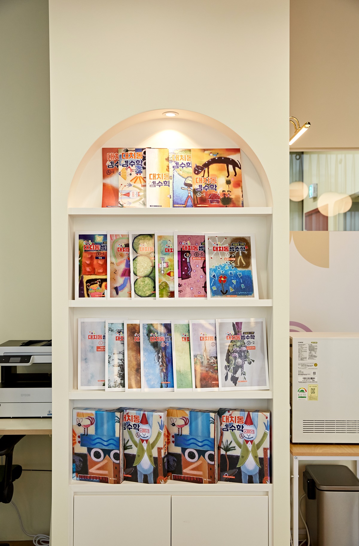 수학 관련 포스터나 문제집, 참고서 등을 쉽게 접근할 수 있는 위치에 배치하면,