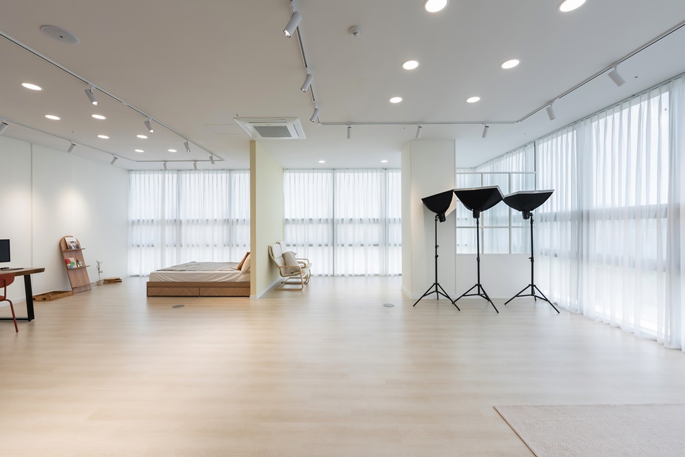 스튜디오로 사용될 공간은 촬영 장비와 소품을 보관할 수 있는 수납공간이 필요하며, 조명과 음향시설도 고려해야 합니다.