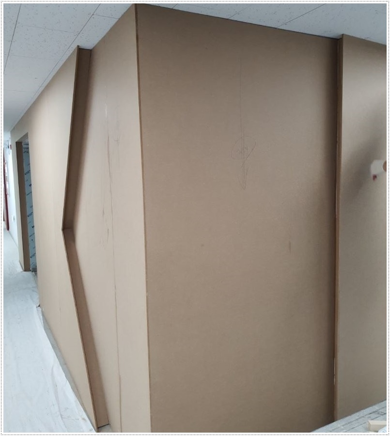 차음재는 외부 소음을 차단하고 내부 소리가 새어나가는 것을 막기 위한 방음 재료인데요, 차음재를 넣고 차례대로 벽면 자재를 부착하면서 전기가 들어가야할 곳의 배선 정리를 함께 해줘야 완공 후 깔끔하게 사용할 수 있습니다. 이렇게 완성된 벽면에 문을 설치해주면 공간과 공간을 드나들 수 있는 동선이 만들어지면서 독립된 공간이 완성됩니다.