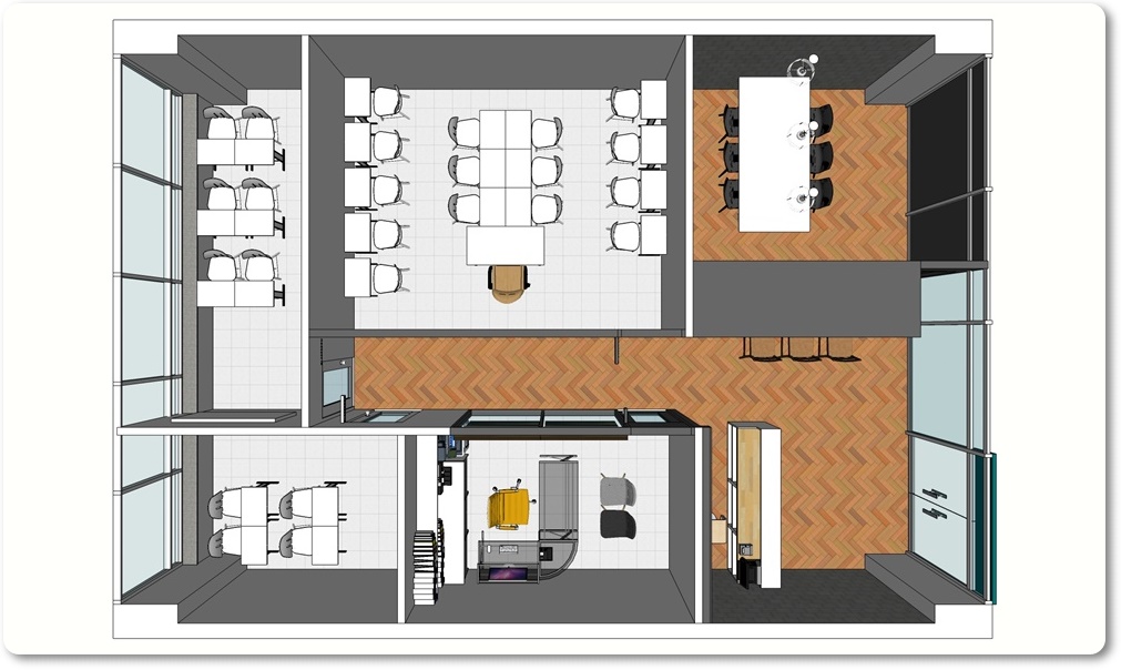 소개해드릴 시안은 작은 규모이기는 하지만 다양한 규모와 레벨의 수업이 이뤄지는 학원을 위해 디자인설계를 계획했습니다. 강의실 및 상담실 공간이 배치된 강의 영역과 안내 및 대기 공간이 배치된 로비 영역으로 나눠 차별된 인테리어를 적용함으로써 가독성과 목적성을 높였습니다.