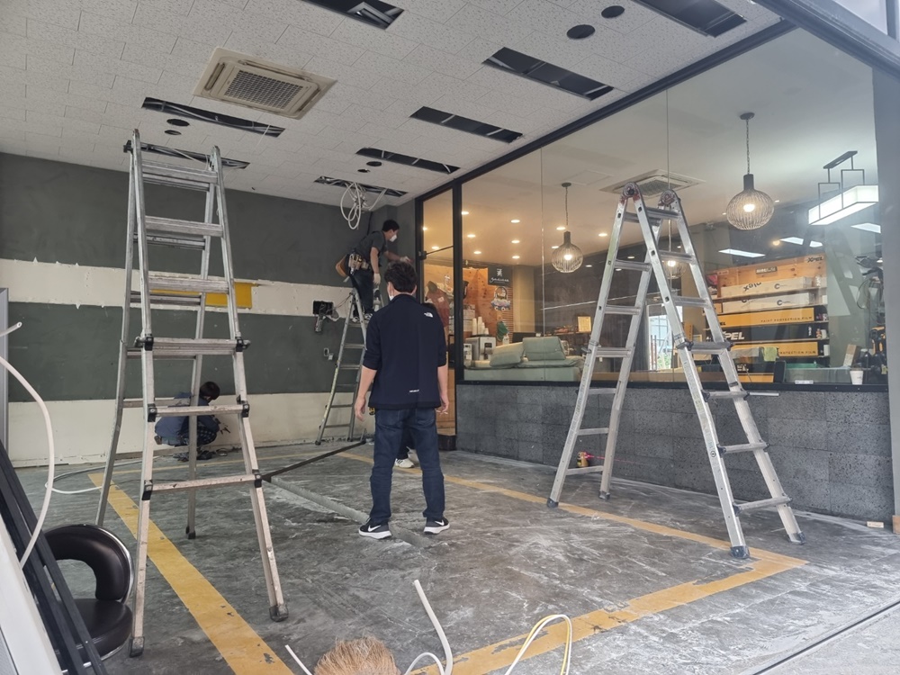 오래된 상가 매장을 리모델링하여 썬팅샵 디테일링샵인테리어로 바꾸는 것은 큰 프로젝트입니다.