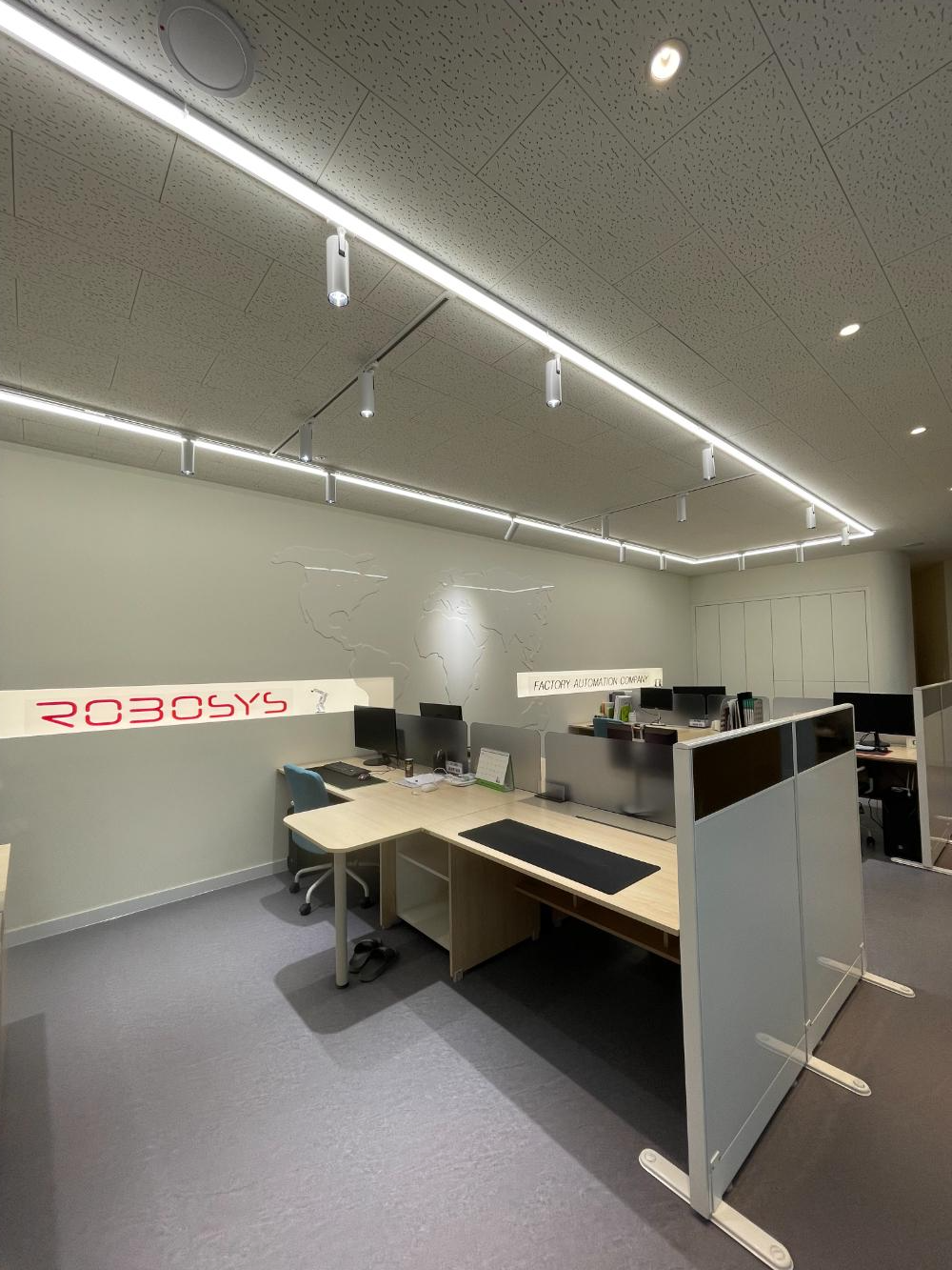 사무실쪽은 네모 프레임으로 라인 조명이