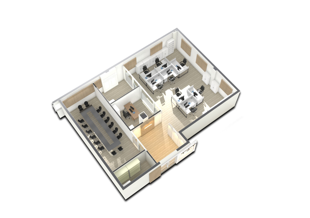 구조는 크게 입구 공간, 업무공간, 대표실,