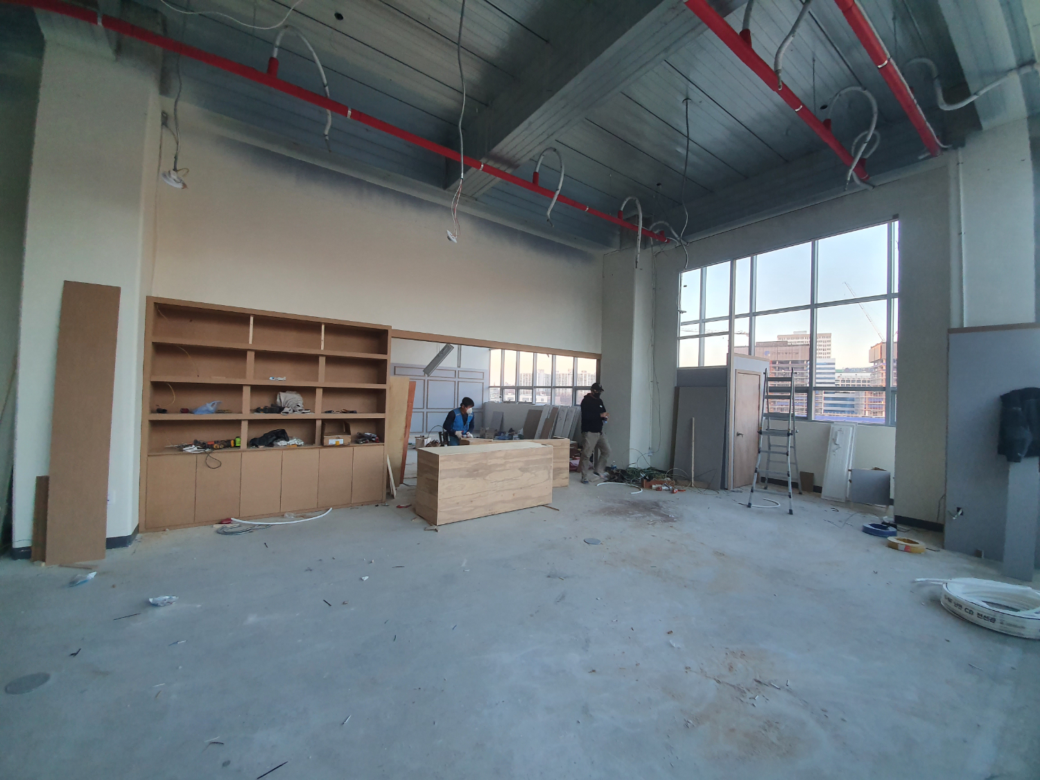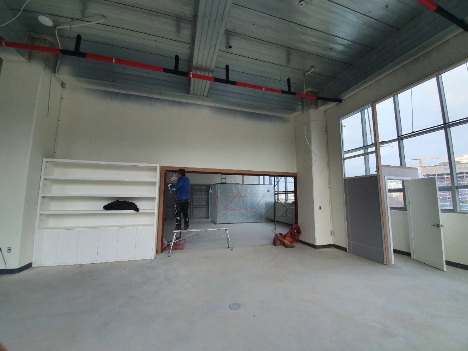 안산 안양 의왕 사무실인테리어 현장은 천고 자체가 매우 높은 편이었기 때문에 비슷한 평수와 비교하더라도 훨씬 넓어보이는 특징을 가지고 있었는데요. 또한 커다란 통창이 전체 외벽을 감싸고 있었으며, 살짝은 차가운 건물 분위기에 맞추어서 모던하고 세련된 현대적인 무드를 이어가기 위해 노력했습니다.