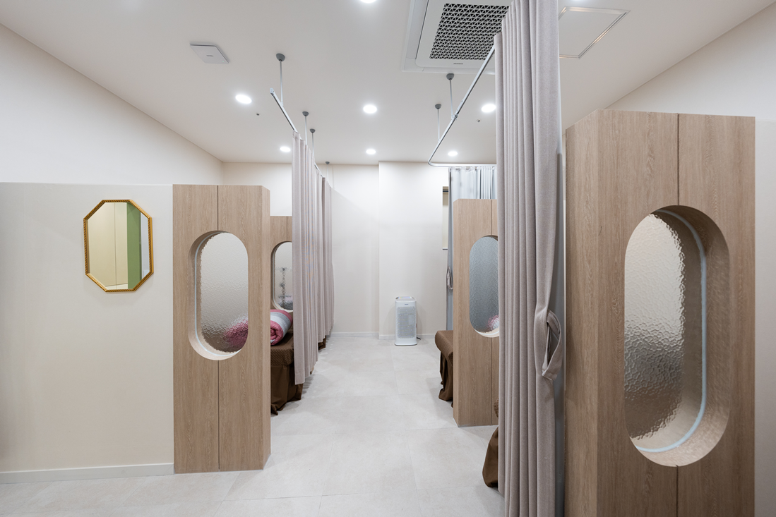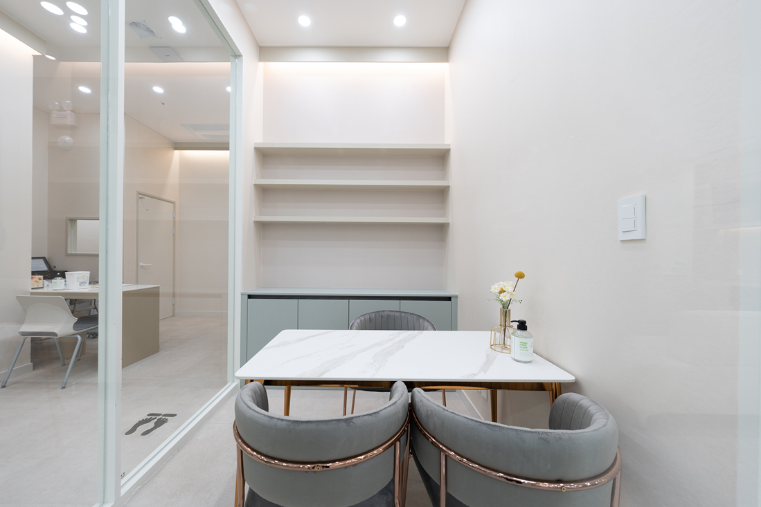 상담실은 곡선형 유리 가벽을 적용하여 트렌디하면서도 개방적인 느낌을 강조했습니다.