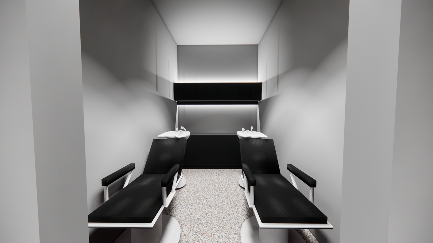 마지막으로 샴푸실 입구 및 내부 디자인입니다.