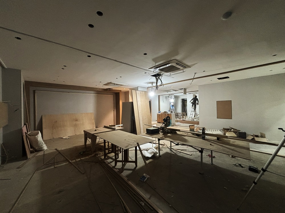 브랜드 전시 수납장 제작은 목공, 전기, 조명팀이 함께 협업해야 했어요.