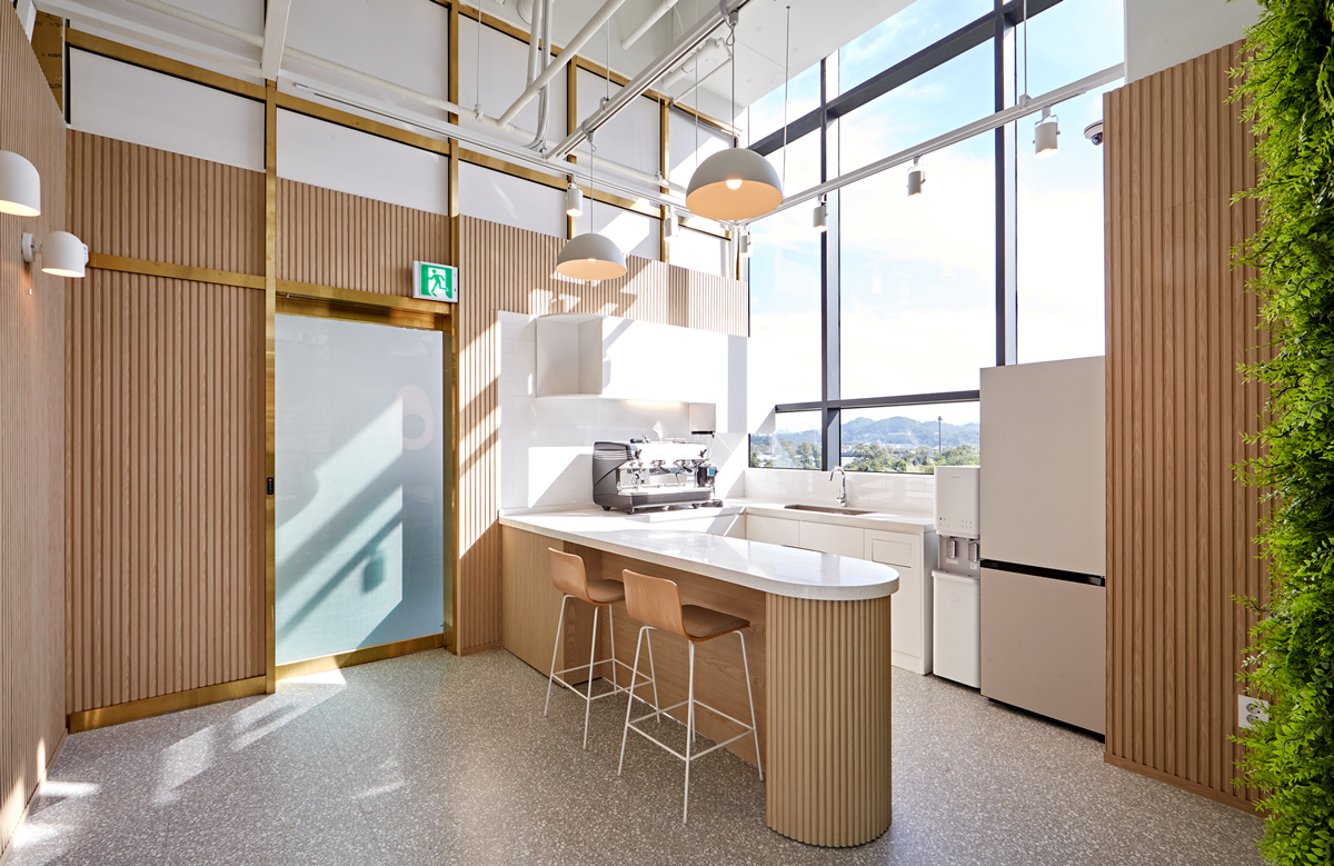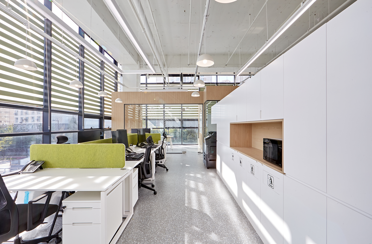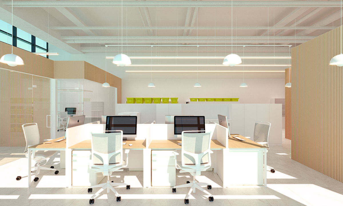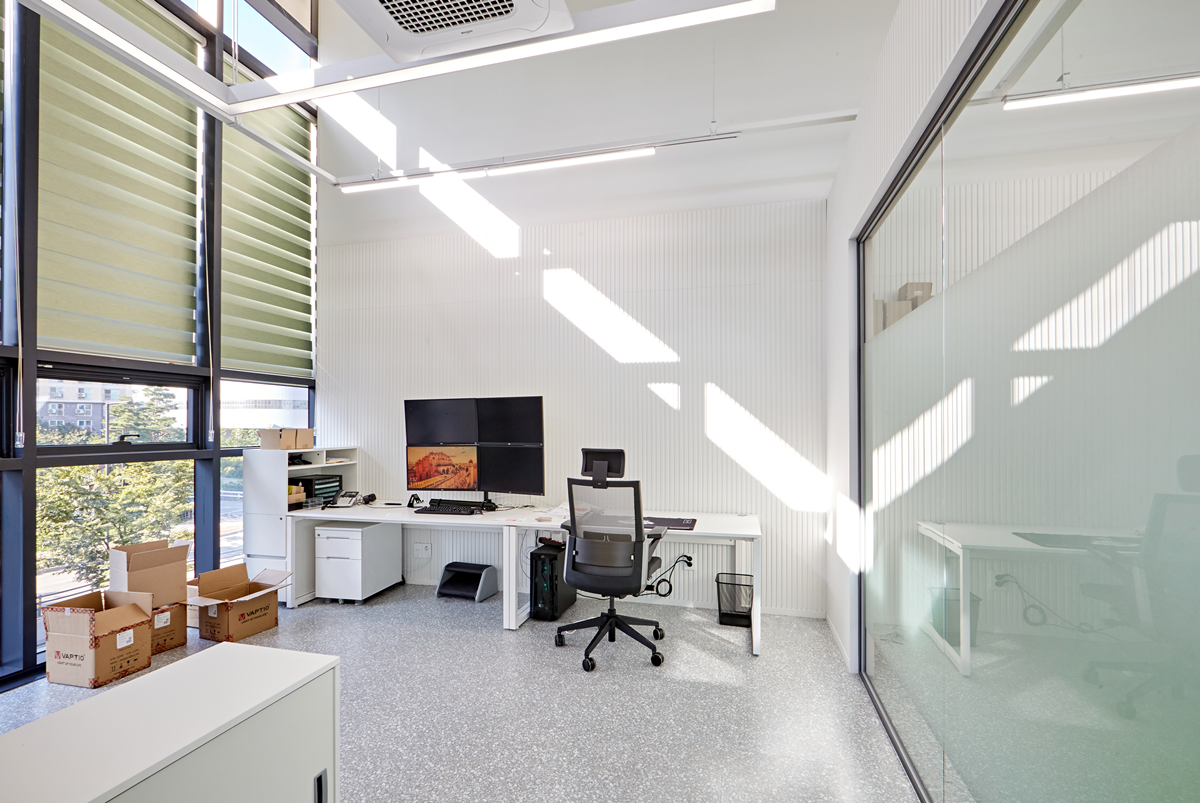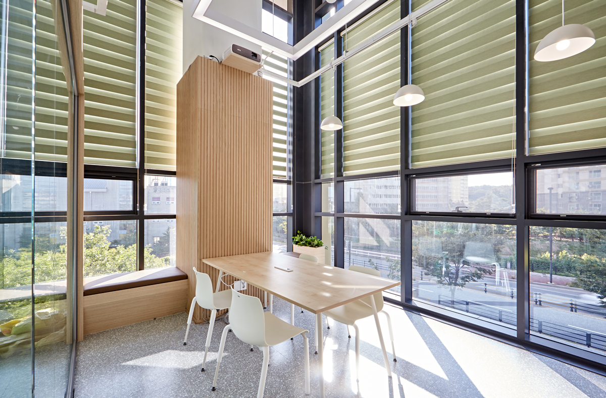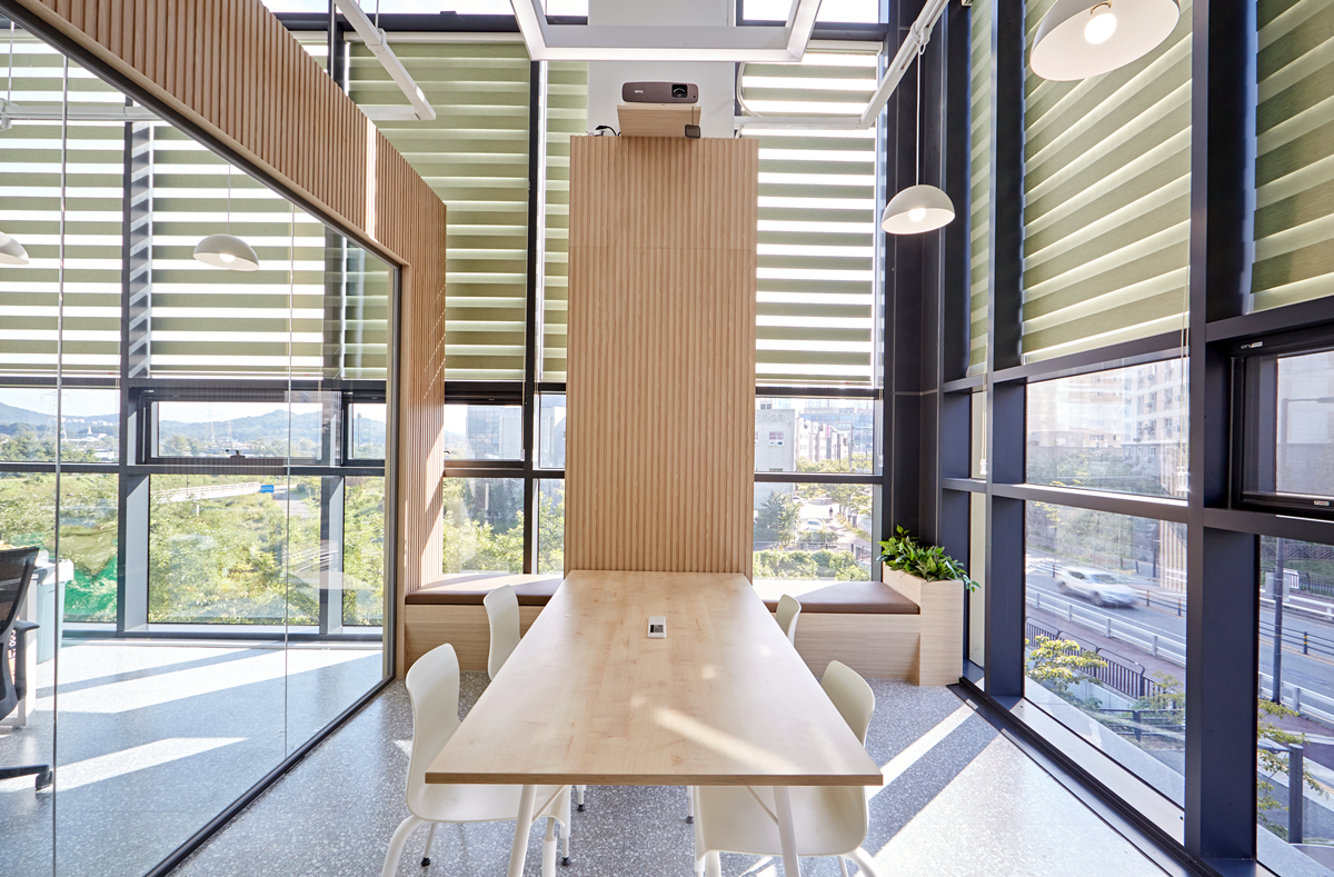 일반적으로 사무실 건물의 층고는 일정 수준 이상으로 확보되어 있으므로 이를 적극적으로 활용하여 공간감을 확장하고 쾌적한 실내 환경을 조성할 수 있습니다.