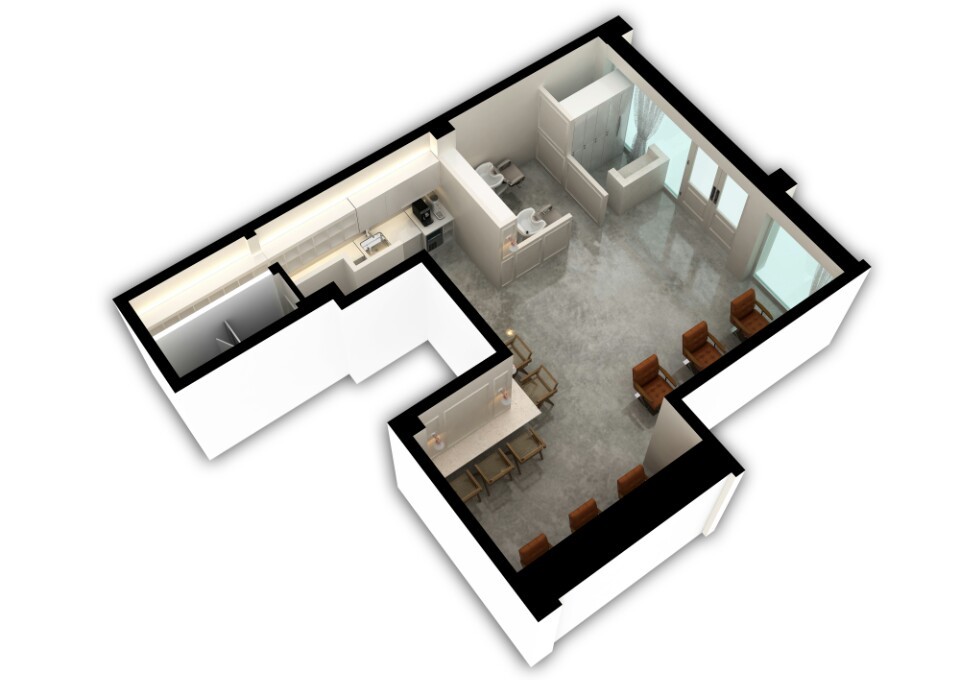카운터는 진한 회색의 컬러로 포인트를