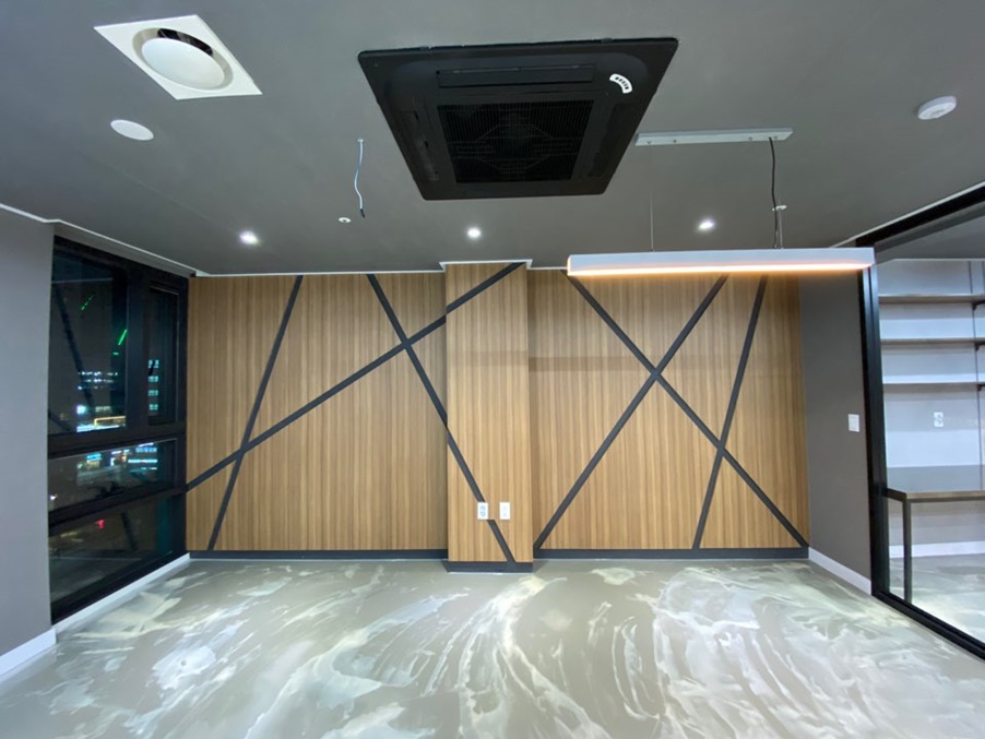 마지막으로 깔끔한 디자인에 회사 로고가 포인트로 들어간 회사 사무실 인테리어를 보여드리면서 안양 평촌k비즈리움 빈티지 사무실인테리어, 블랙 우드 포인트를 진행한 현장 소개를 마치도록 하겠습니다.