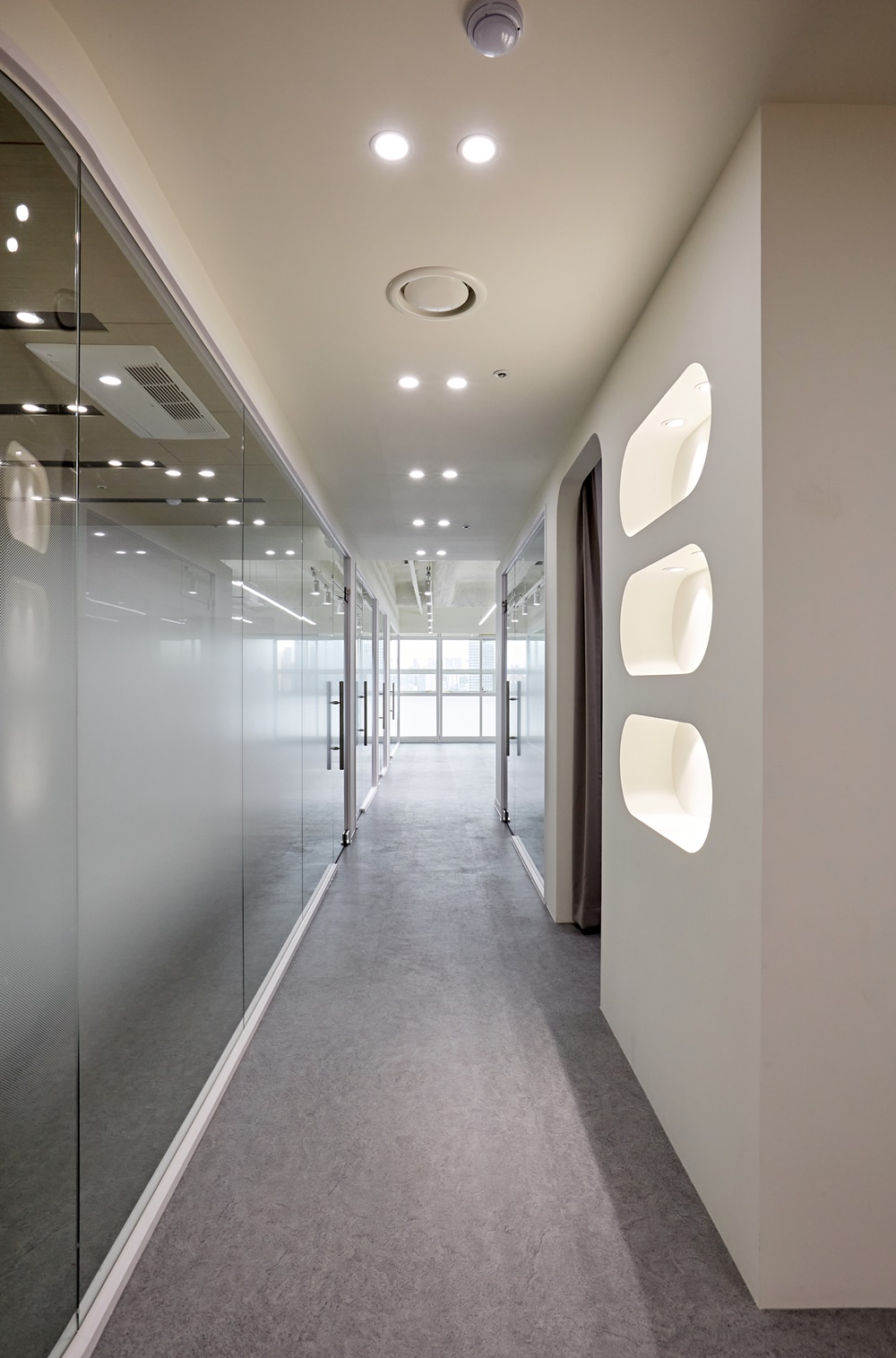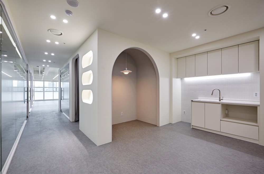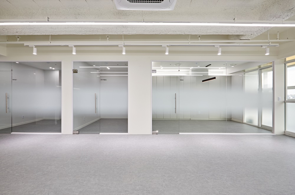 사무실디자인으로 구성하는 요소들이 모두 화이트톤으로 통일되면 시각적으로 더 조화롭게 연결되어 보여요.