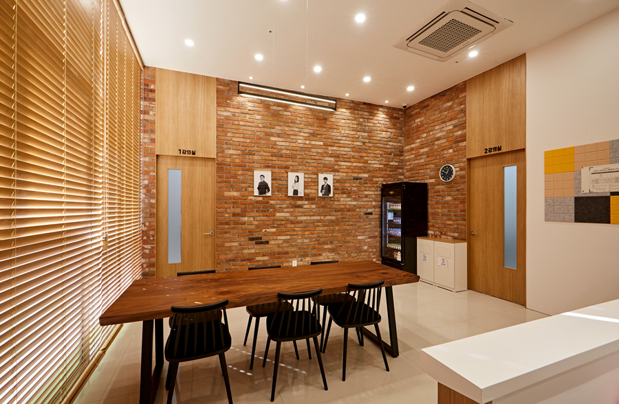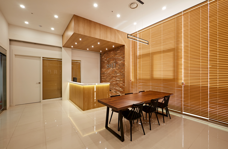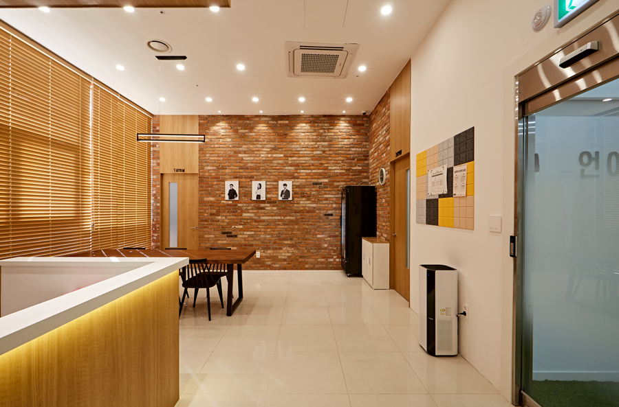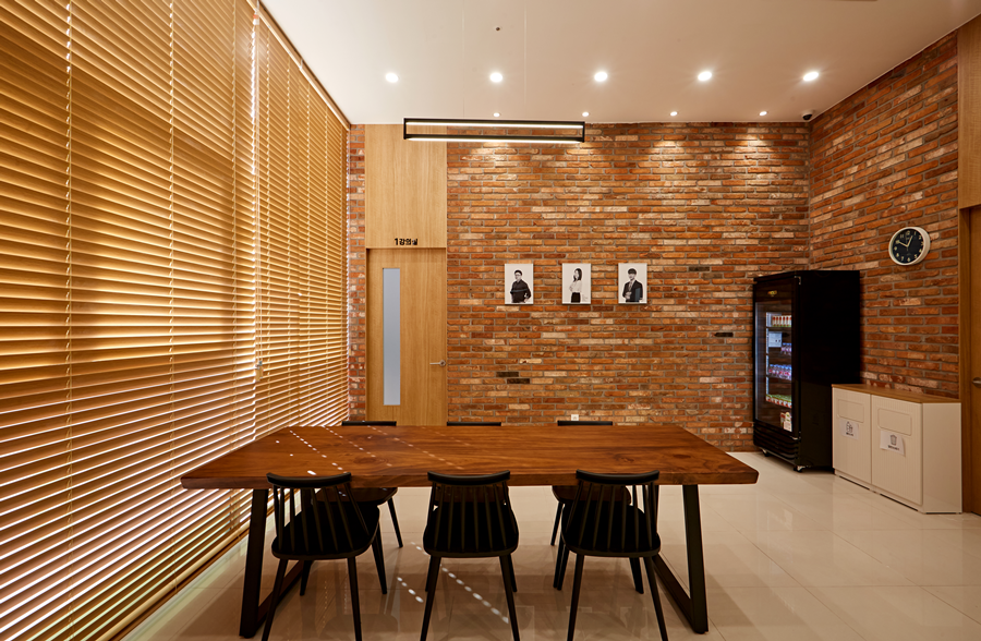 아카데미의 특성상 학생들이 장시간 머무르는 공간이기 때문에, 편안하고 안정감 있는 분위기를 조성하는 것이 중요하다고 판단했습니다. 이를 위해 전체적으로 안정감을 느끼게 해주는 우드 컬러를 사용하여 깔끔하고 모던한 느낌을 연출했고, 곳곳에 우드 소재를 활용하여 따뜻하고 아늑한 분위기를 더했습니다. 또 각 강의실에는 칠판과 책상, 의자 등을 배치하여 학생들이 수업에 집중할 수 있도록 했습니다.