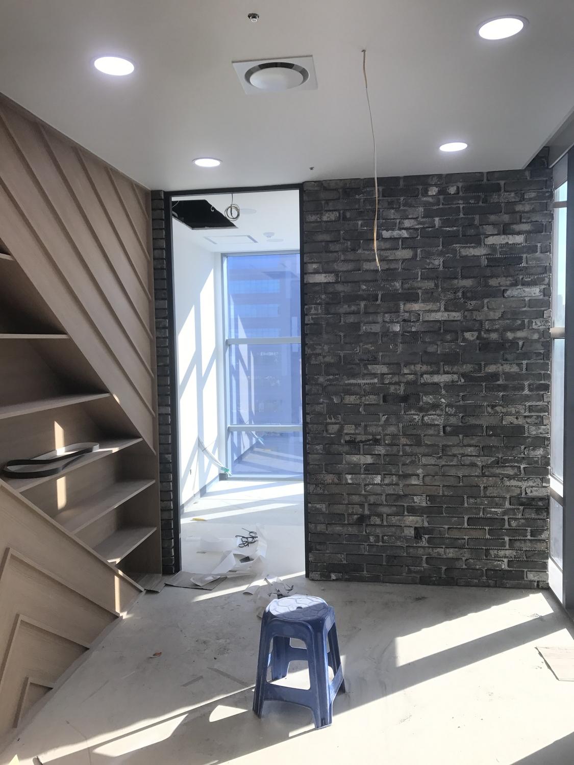 벽면 인테리어 마감 현장을 살펴보면 동일한 간격으로 전문가의 정교한 기술을 확인하실 수 있습니다.벽돌 인테리어로 모던한 분위기가 한층 살아난 것 같지 않나요?