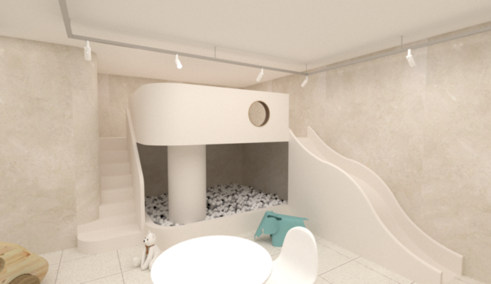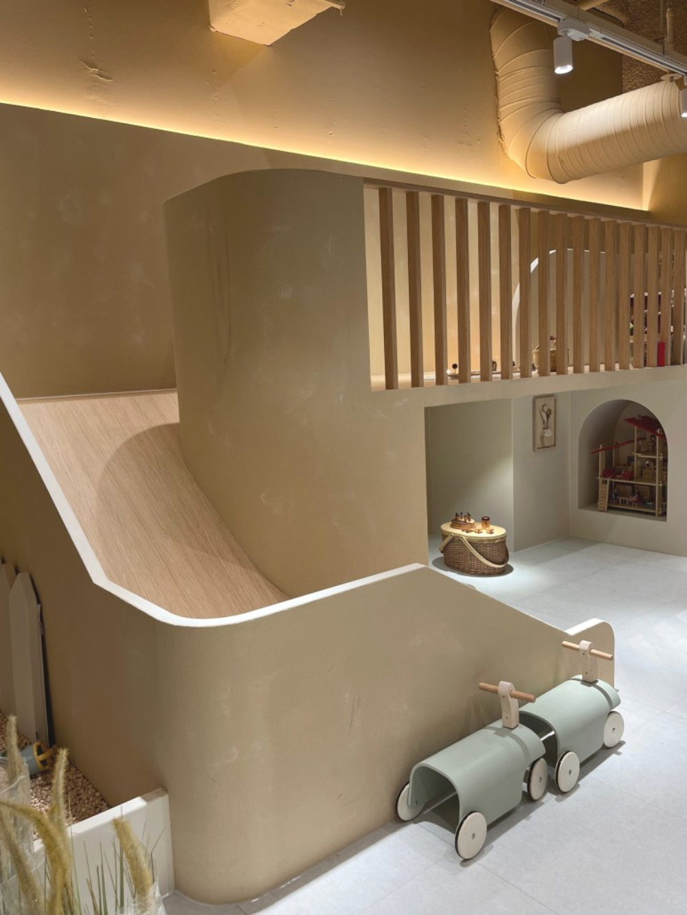 따뜻한 색감은 키즈풀 내부 인테리어에도