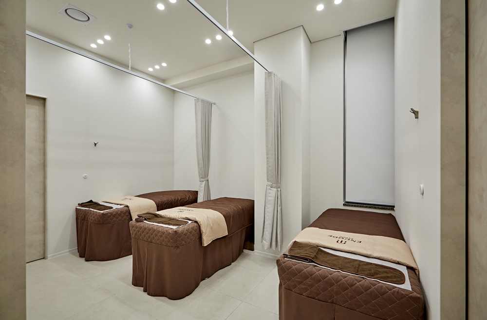 가구는 고객들이 편안하게 앉아서 대기하거나 휴식을 취할 수 있는 소파나 의자, 피부 관리를 받는 동안 사용하는 침대나 마사지 베드 등이 있습니다.