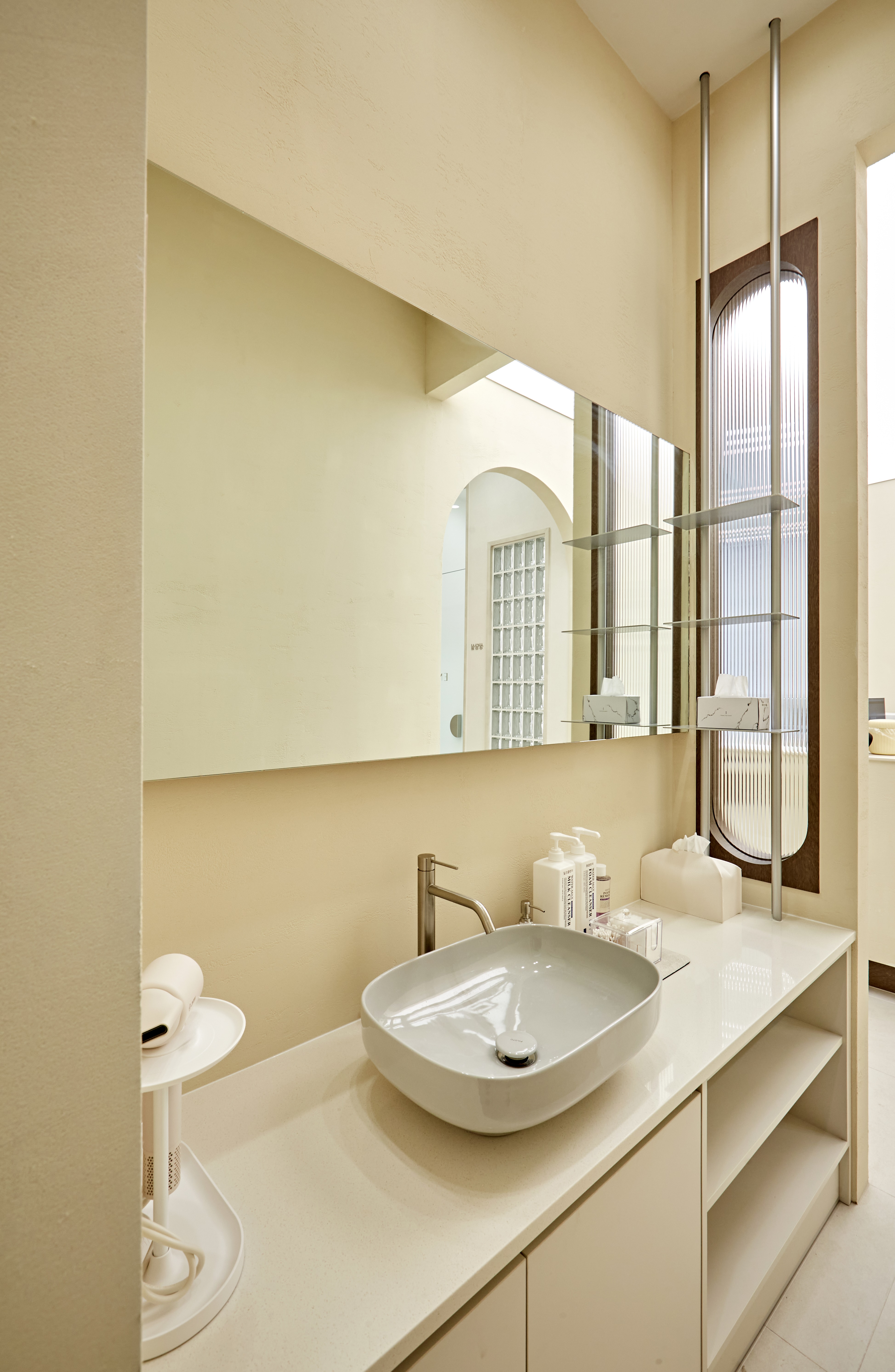 밝은 조명은 공간을 넓어 보이게 하고, 화사한 부누이기를 연출할 수 있지만, 피부 관리를 받는 동안에는 눈이 부시지 않도록 적절한 조도를 유지해야 합니다.