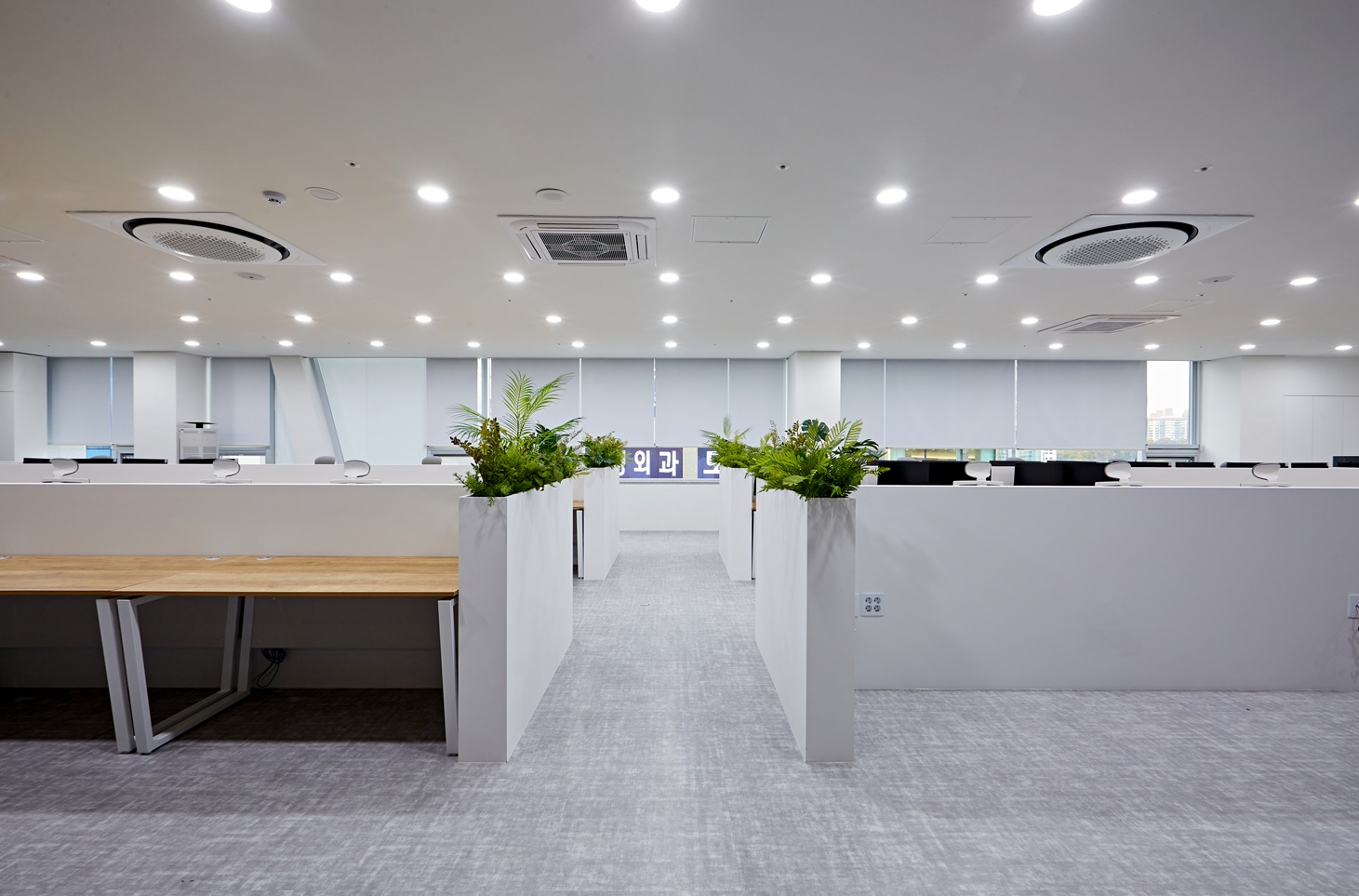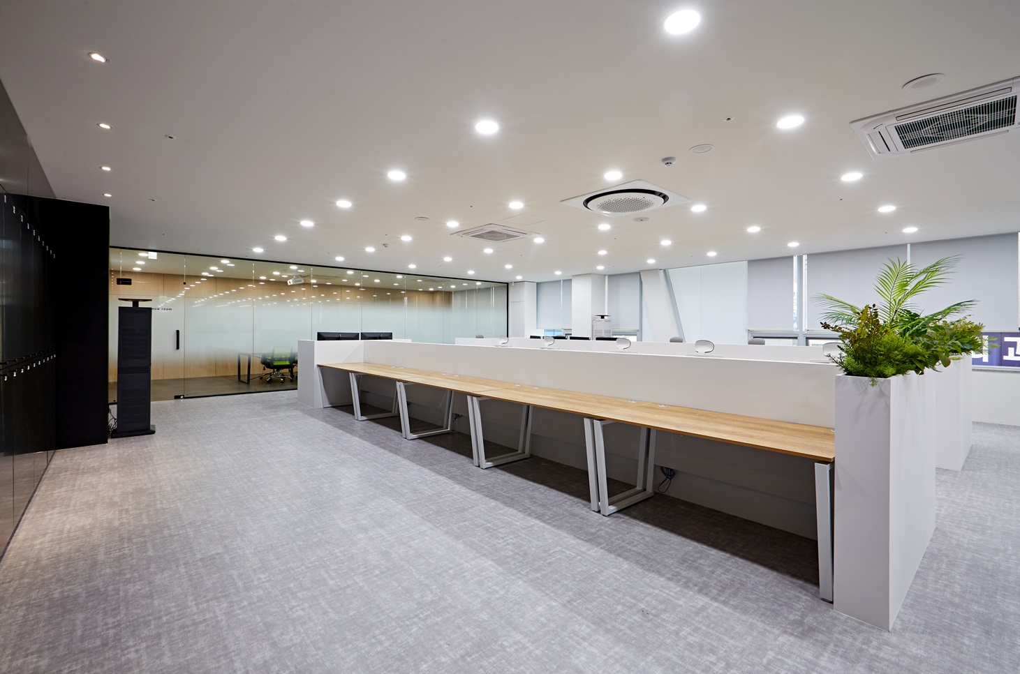 오픈형 사무공간은 화이트톤의 낮은 가벽을 활용하여 개방성과 집중도를 모두 완벽하게 연출하였습니다.