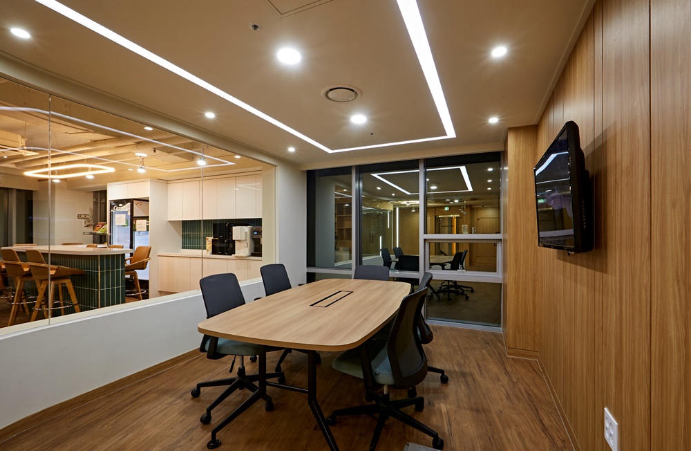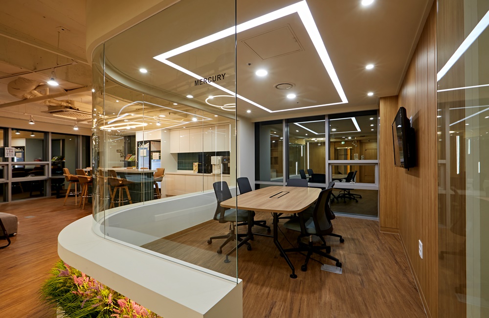 회의 전후의 스몰토크와 개인 집중 업무를 동시에 수용할 수 있는 멀티펑셔널 공간 구성이 필수적이죠.