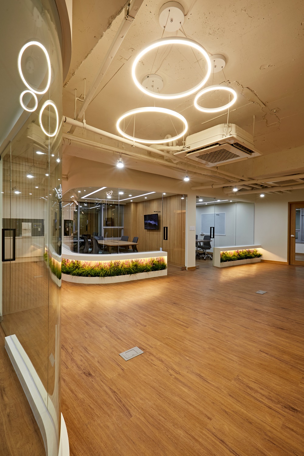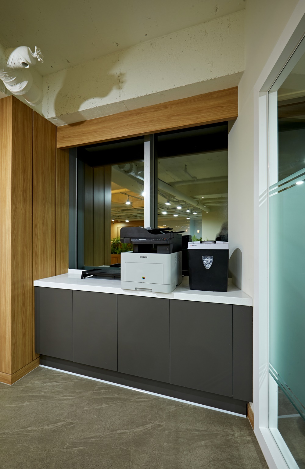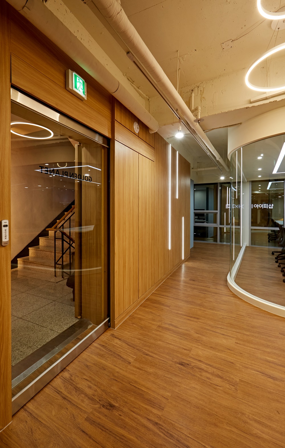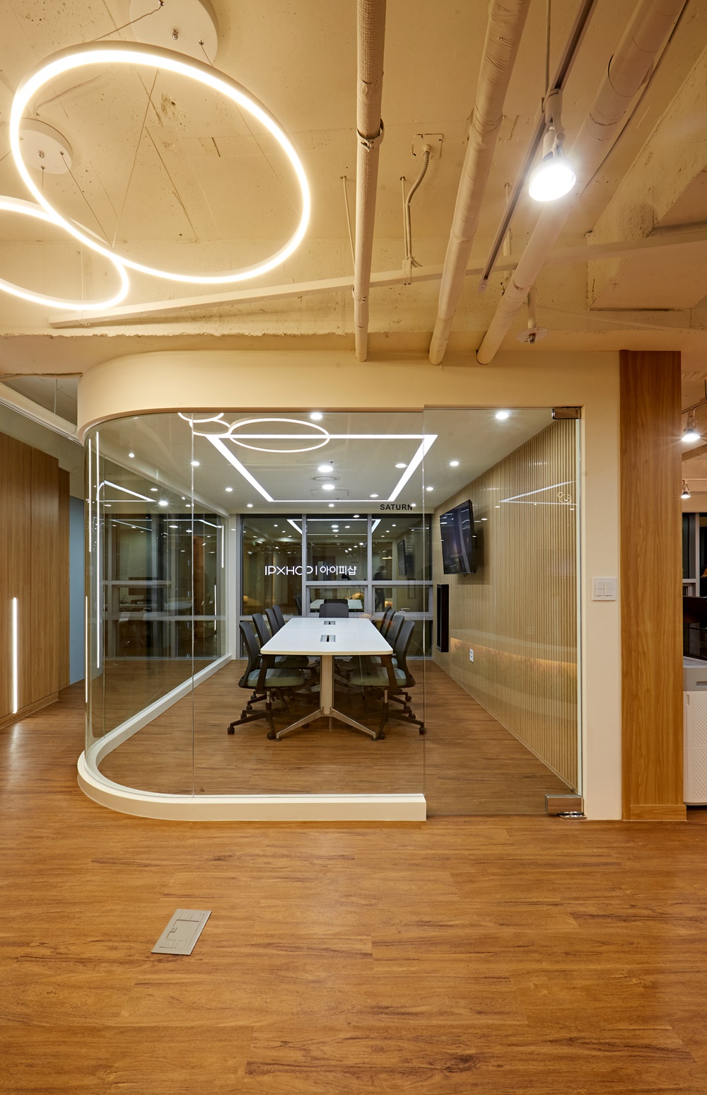 노출천장의 높은 층고는 개방감을 극대화하면서 유리 가벽을 통해 공간 간의 시야를 확장시켜 답답함 없이 업무에 집중할 수 있는 환경을 만들어주었죠.