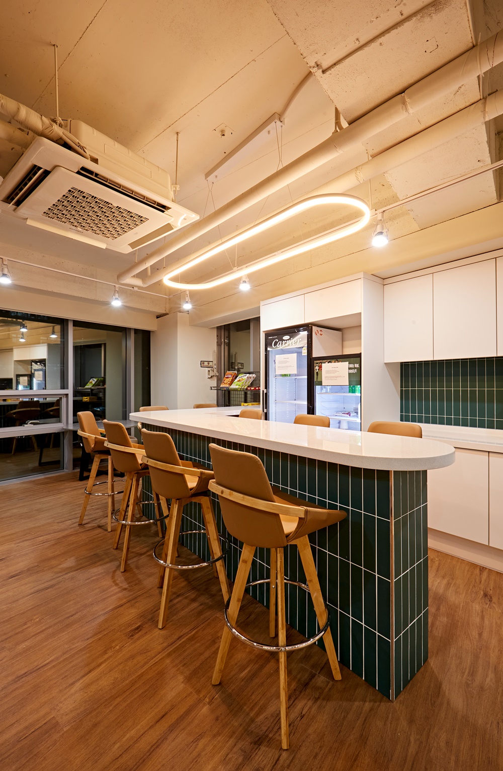 특히 중앙 카페테리아는 직원들이 가장 많이 머무는 인기 공간으로 자리 잡았으며 자연스럽게 회의나 간단한 미팅, 커피 브레이크가 이루어지는 소통의 허브로 기능할 수 있도록 했어요.