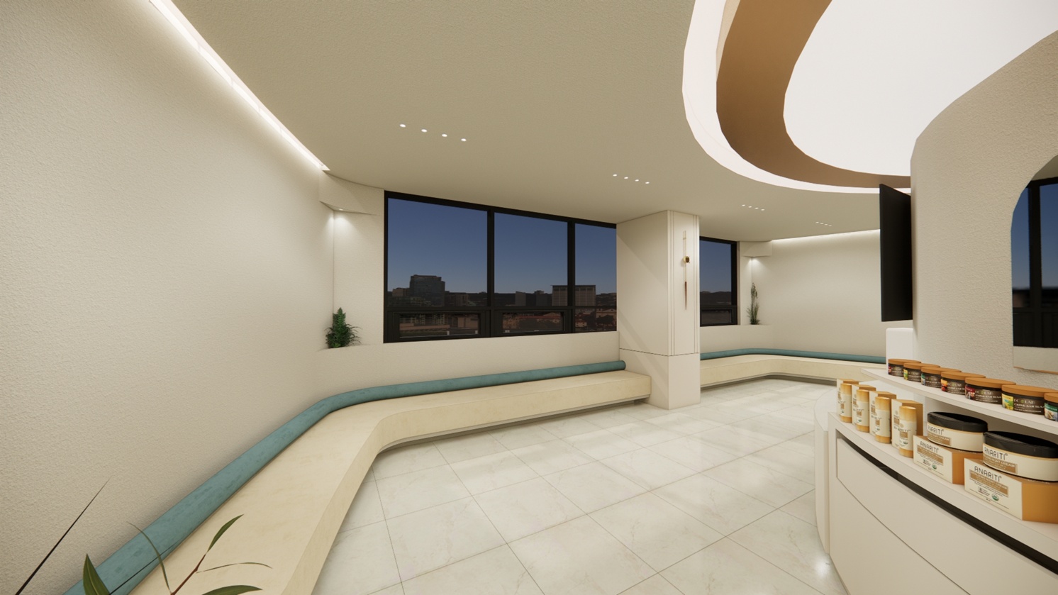관리실은 고객이 가장 편안하게 시간을 보내야 하는 공간이기 때문에 부드럽고 은은한 분위기를 중심으로 연출하였습니다.