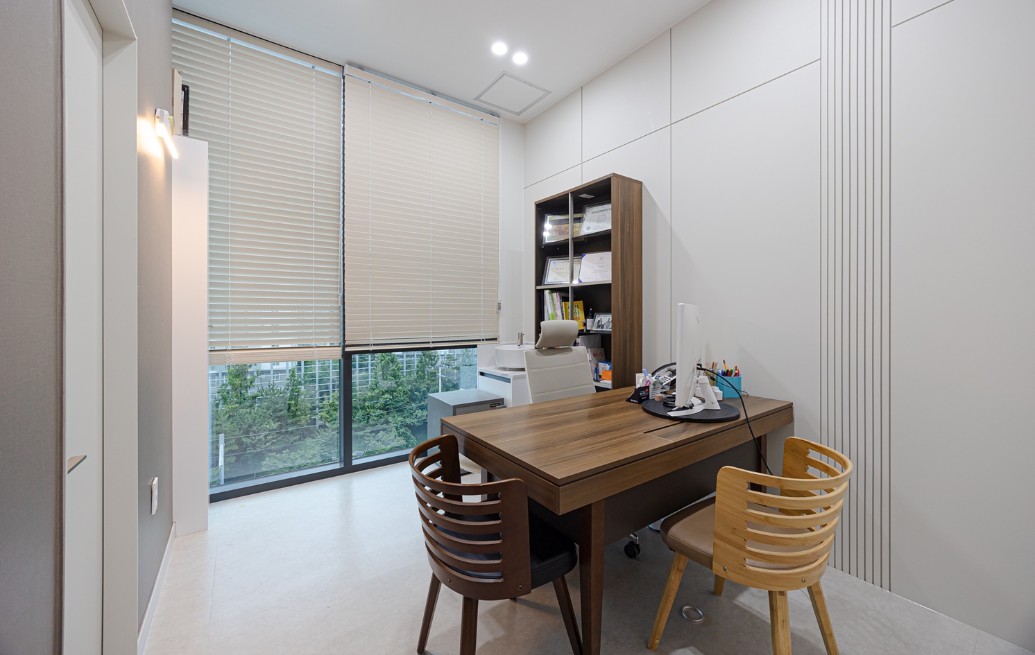 진료실은 고객의 긴장을 최소화할 수 있도록 전체적으로 부드러운 톤의 벽면과 간접 조명을 중심으로 설계하였습니다.