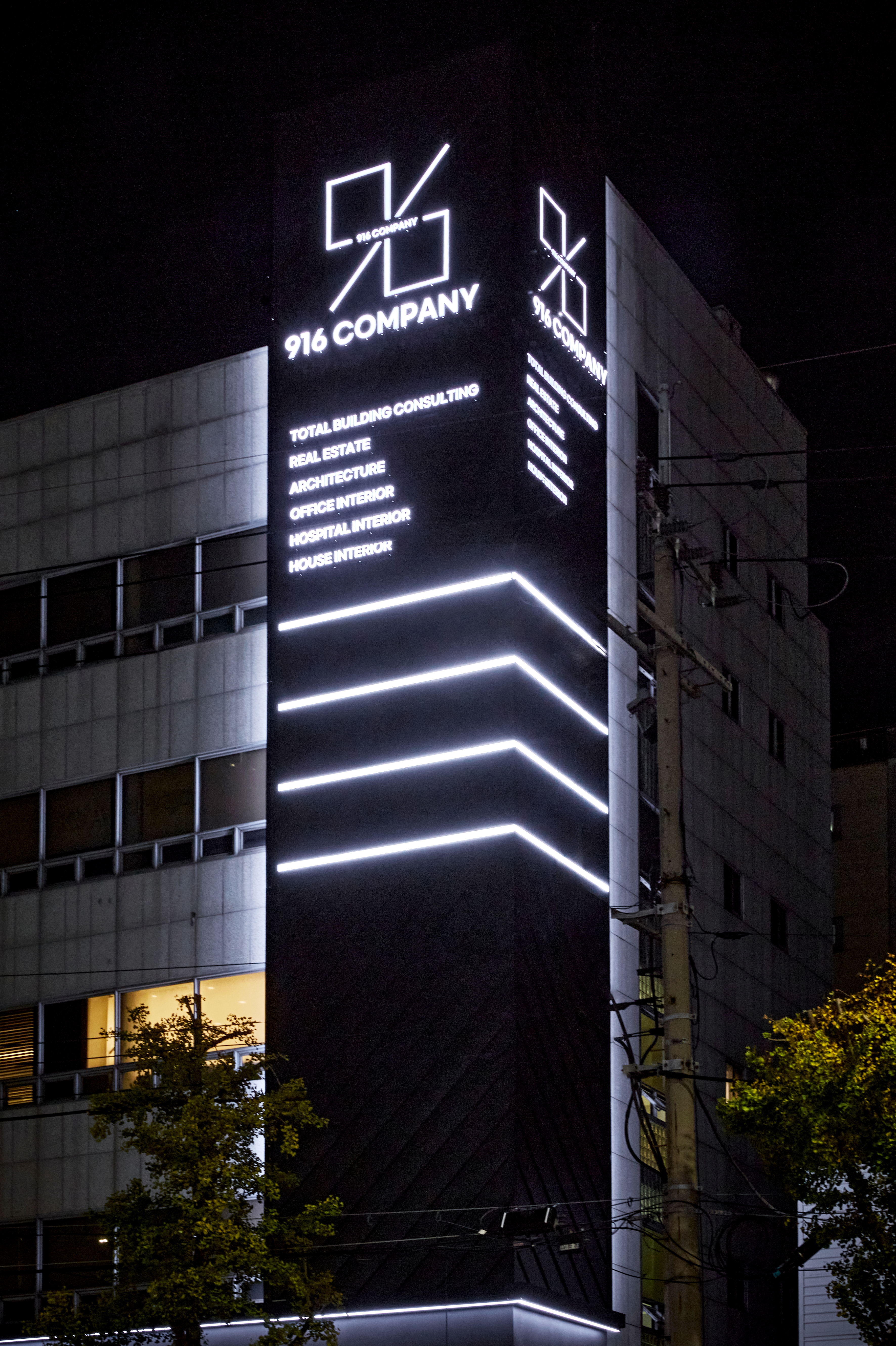 벽에 회사로고와 조명을 함께 달아드렸습니다.