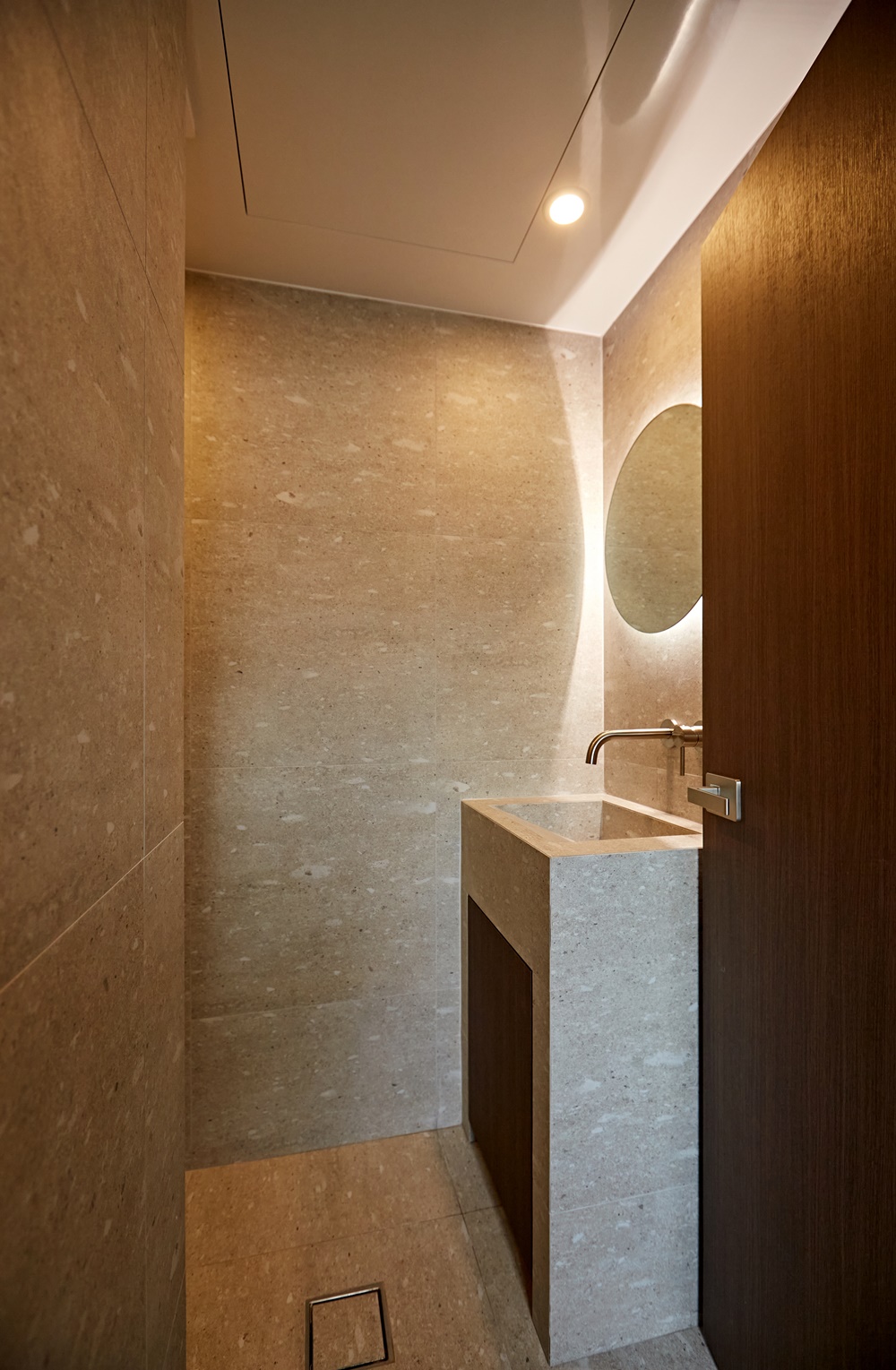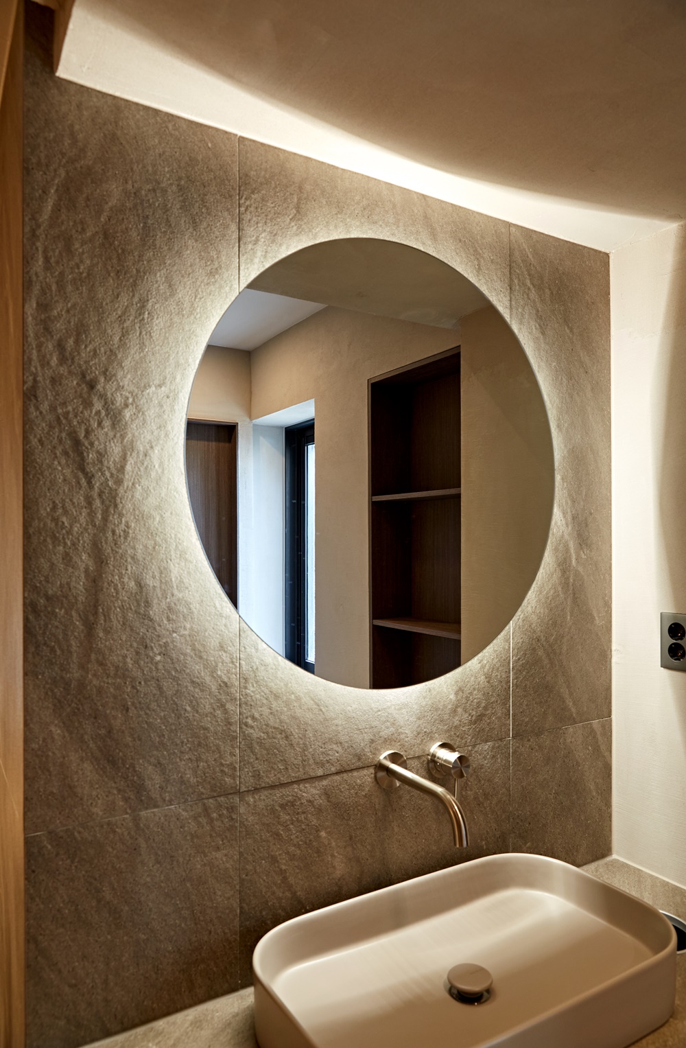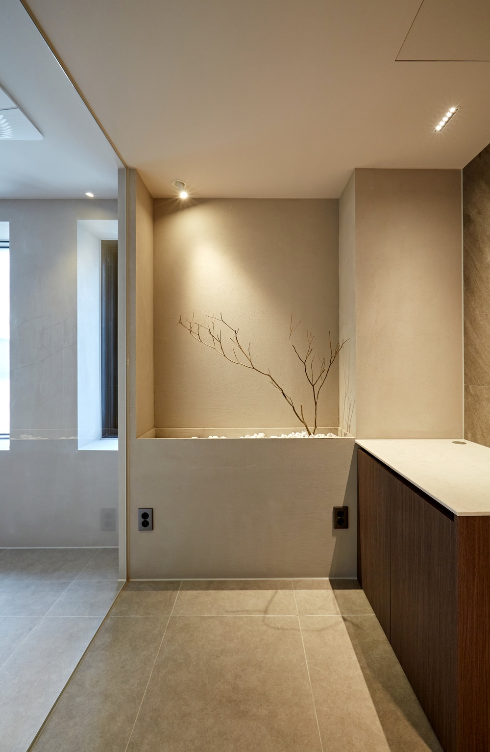 자연광을 최대한으로 활용하여 인상적인 연출이 이루어지도록 했지만 현실적으로 자연광을 활용할 수 없는 공간에서는 부드럽고 따스한 조명을 설치하여 고객에게 편안함을 전하며 자신을 돌아볼 수 있는 공간으로 만들었습니다.