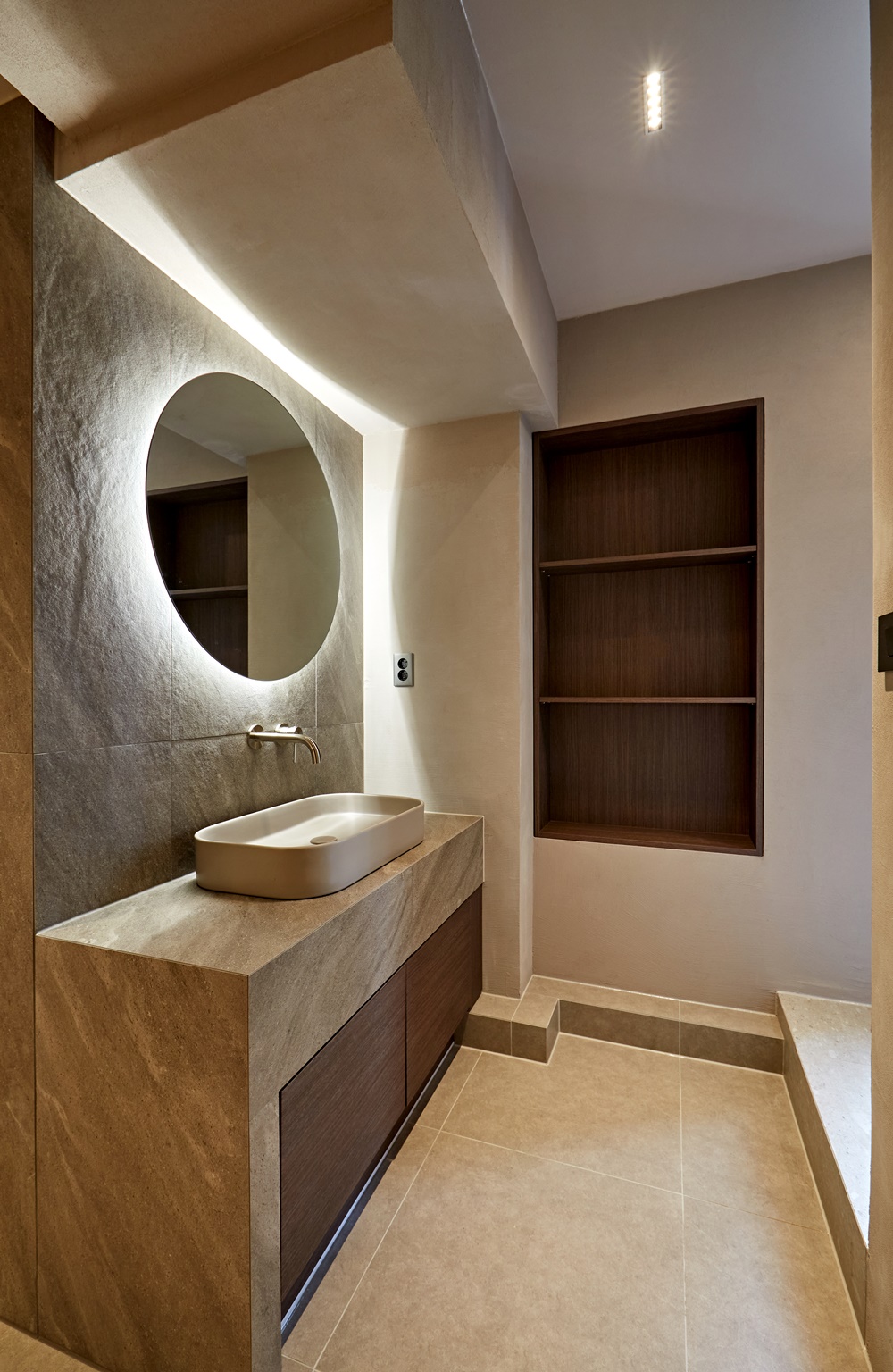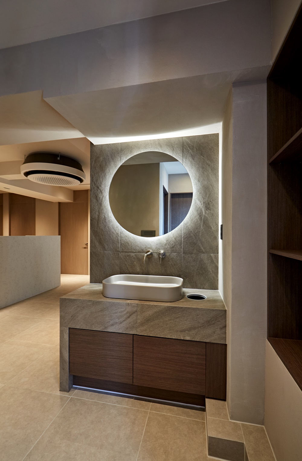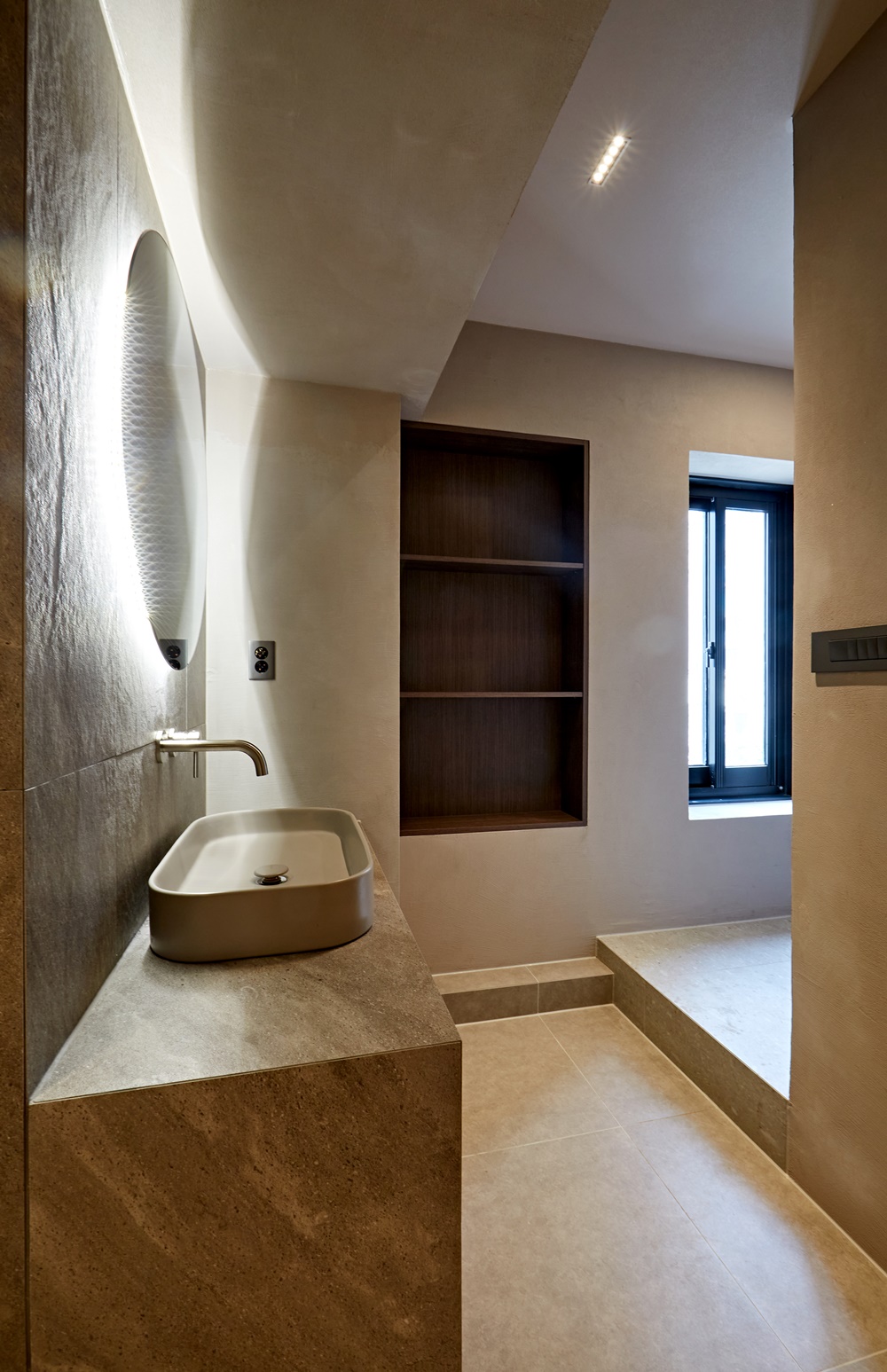 자연광을 최대한으로 활용하여 인상적인 연출이 이루어지도록 했지만 현실적으로 자연광을 활용할 수 없는 공간에서는 부드럽고 따스한 조명을 설치하여 고객에게 편안함을 전하며 자신을 돌아볼 수 있는 공간으로 만들었습니다.