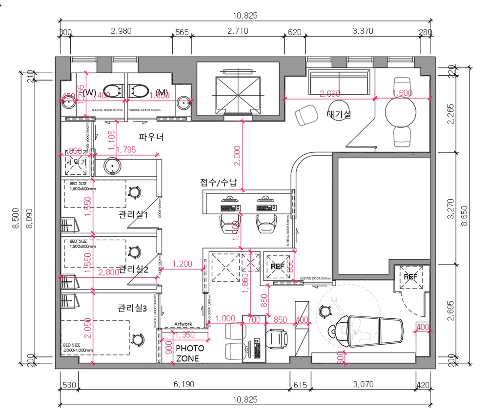 피부과를 방문하고 치료 후 나가는 그 순간까지도 고객이 만족할 수 있도록 공간을 효과적으로 설계하기 위해 여러 방향성을 고려했습니다.