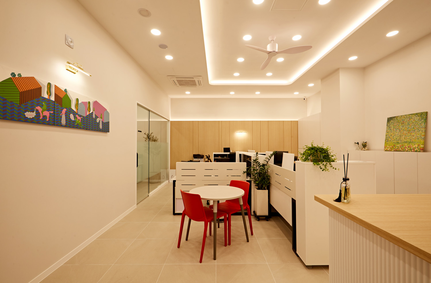 영등포 동작 사무실인테리어 화사한 조명과 눈에 띄는 입구 파사드 연출로