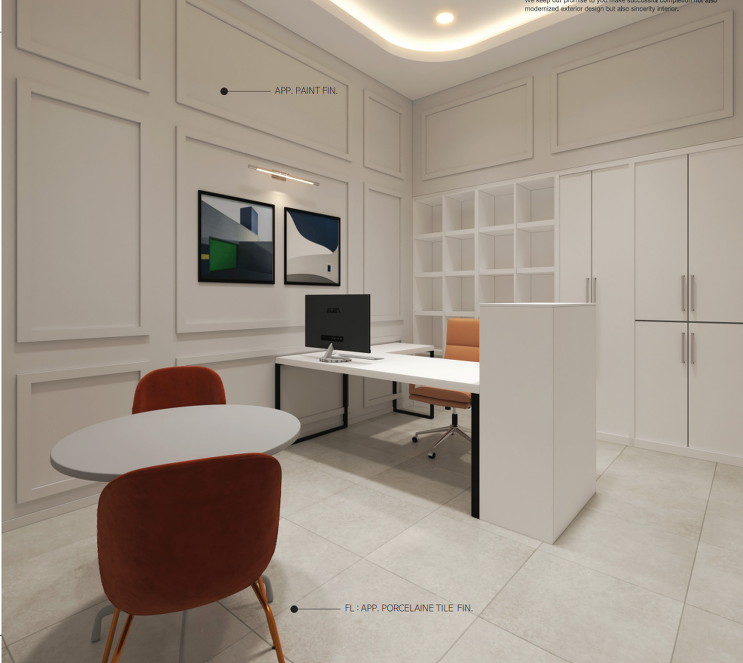 아치형 도어와 어울리는 내부는 화이트 인테리어에 웨인스코팅을 더하여 클래식한 멋을 뽐내고 있었는데요. 벽선반으로 조금은 미니멀한 연출이 가능하고 사무공간이 딱딱한 곳이 아니라 편안하고 마치 나만의 개성이 담긴 개인공간처럼 활용하실 수 있도록 도와드렸습니다.