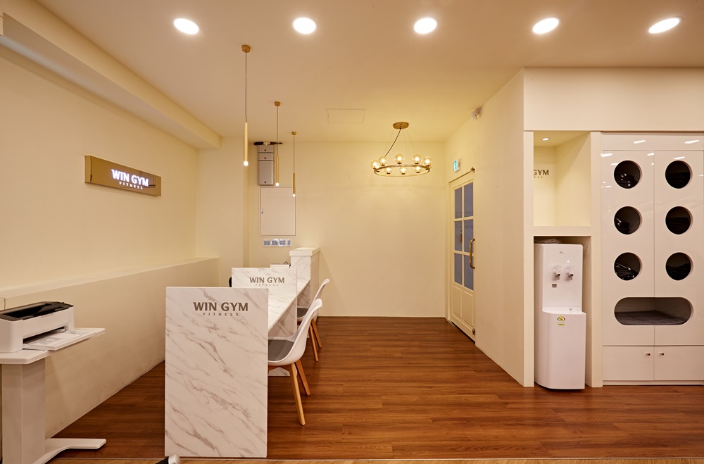 전체적으로 화이트로 마감을 했지만 우드톤, 크림톤, 웜톤 등이 어우러져 화사하면서 따듯한 느낌이 들어 편안한 마음으로 운동을 할 수 있을 것 같습니다.
