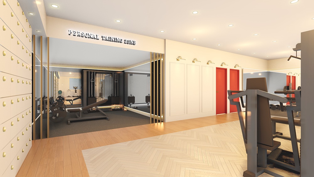 인포 데스크에서 키를 받아 내부로 진입하는 동선을 따라가는 벽면에 개인 라커를 계획해 필요한 물품을 꺼내고 넣어둘 수 있도록 함으로써 사용성과 편의성을 높였습니다. 라커를 따라 가면 퍼스널 트레이닝존이 있는데요, 1:1 PT 수업이 진행되는 곳으로 좀 더 집중할 수 있는 차분한 컬러를 적용해 다른 운동공간과 차별성을 둠으로써 영역성과 가독성을 높였습니다.