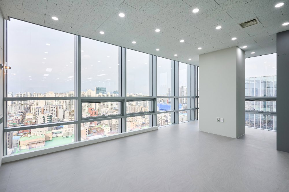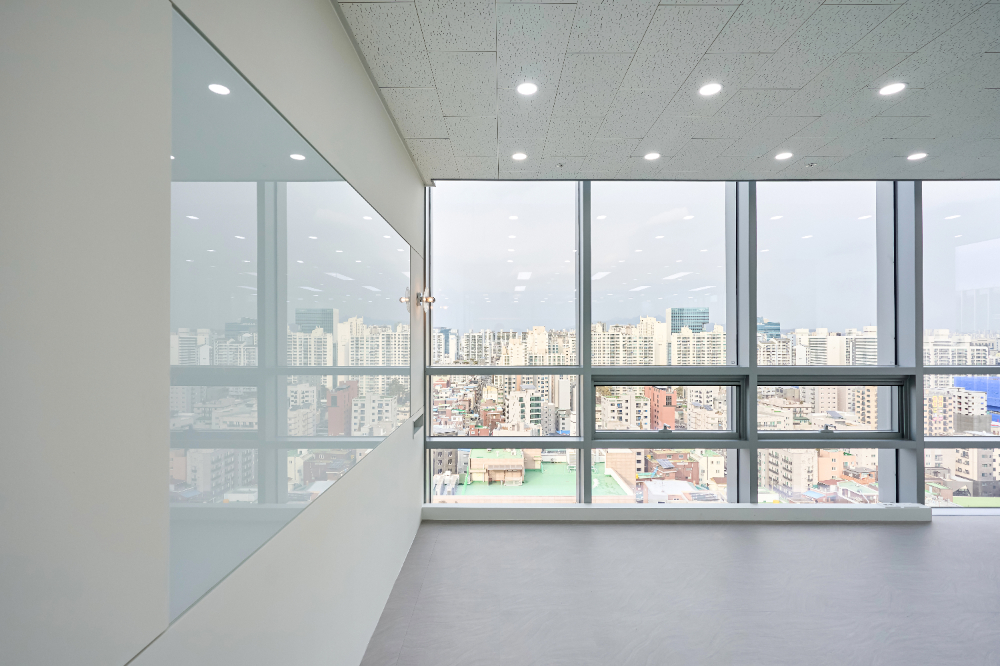 그리고 모든 벽면의 창문들이 통창으로 되어 있어서 영등포 에이스ns타워 지식산업센터인테리어의 개방감은 생각보다 실제로 방문했을 때 더욱 느끼실 수 있는데요. 클라이언트분도 실제로 방문하시고는 마치 하나의 커다란 공간같이 답답함이 없다며 매우 만족하셨습니다.