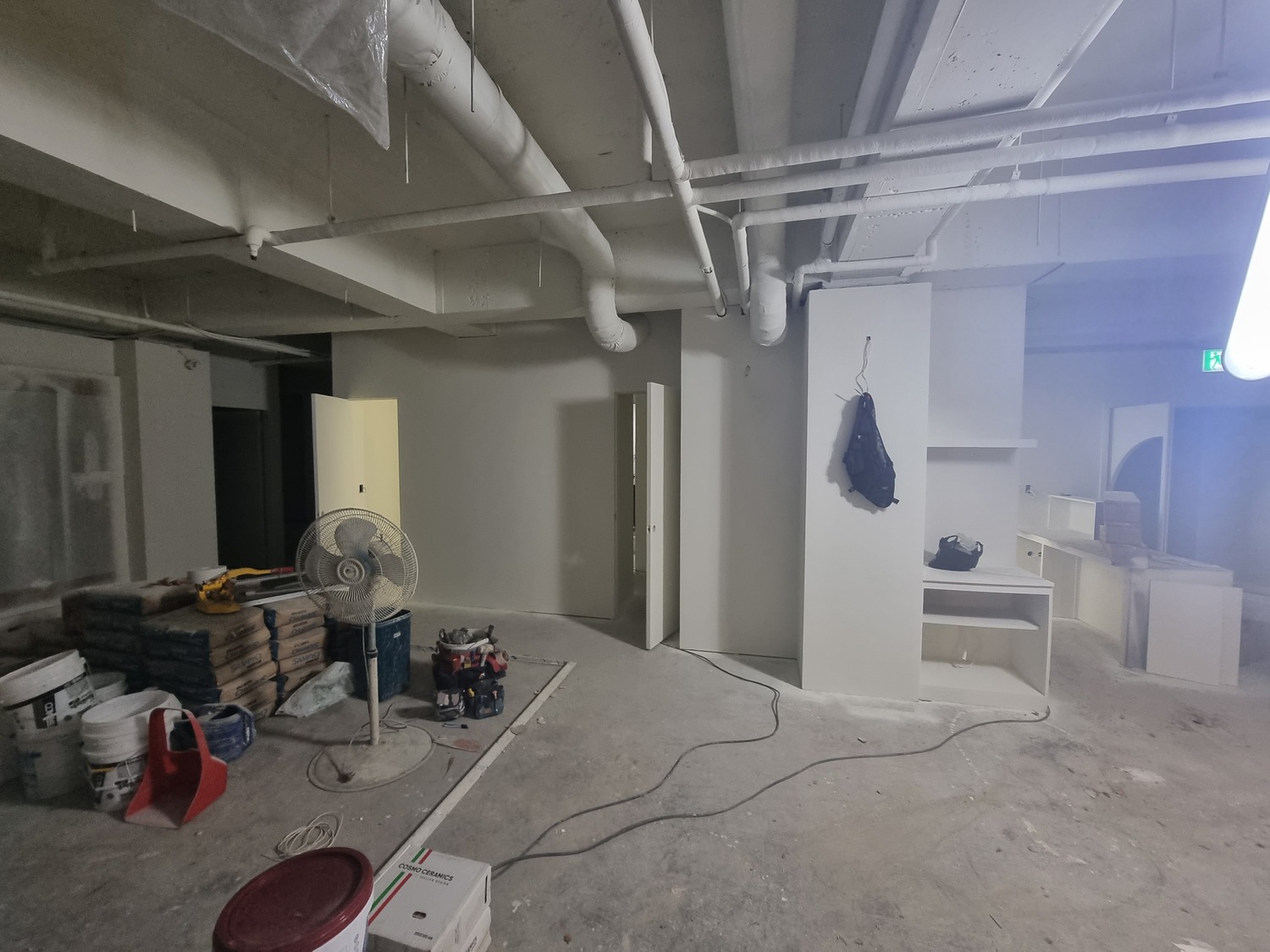 그리고 기초가 되는 목공 작업으로 가벽을 세워 공간을 분리하고, 해당 공간마다 기초가 되는 디자인을 참고하여서 도장 작업에 돌입합니다. 그리고 동선을 고려해서 필요한곳마다 전기 작업과 조명 작업도 진행합니다.
