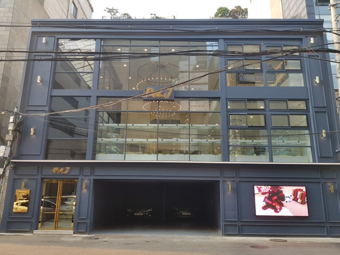 파스텔 블루 색상으로 건물 전체를 밝고 현대적으로 연출하였으며, 골드 포인트 입구와 사인물로 건물을 더욱 고급스럽고 세련되게 연출한 것이 가장 두드러지는 변화입니다.