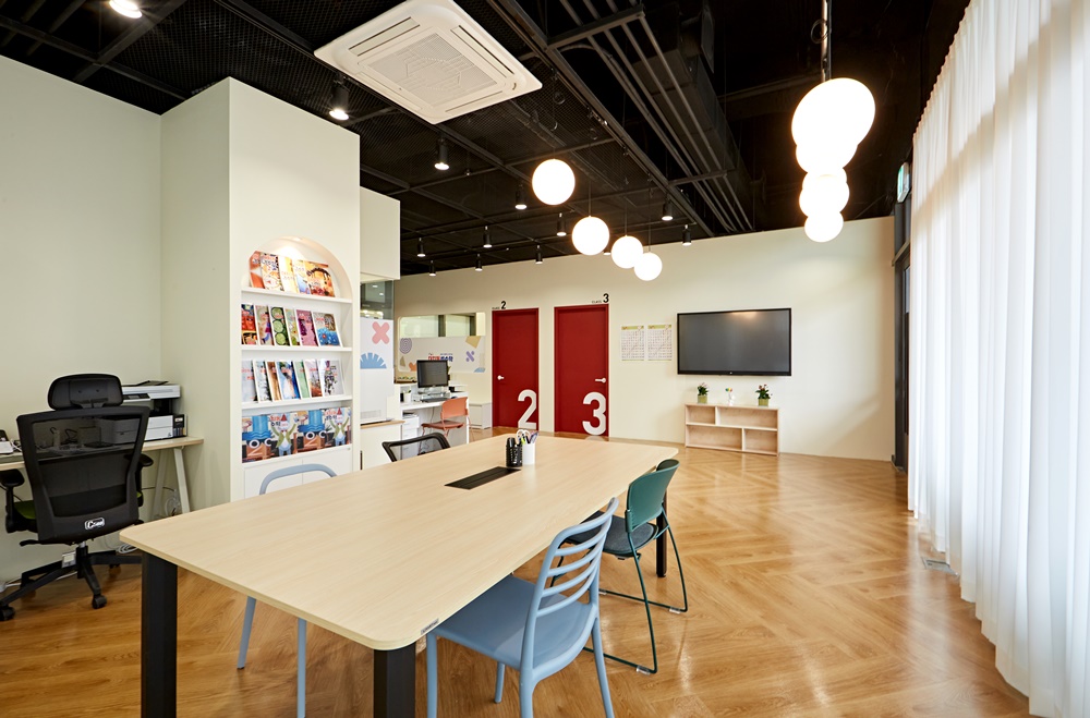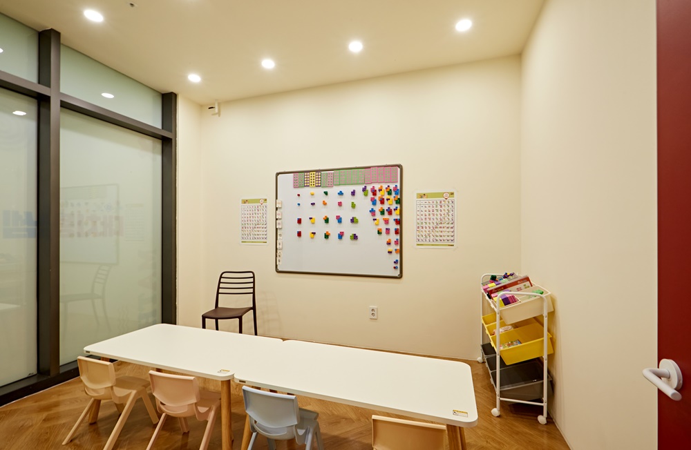 수학 교습소 공간은 아이들이 자유로운 분위기에서 창의적인 사고를 할 수 있도록 배치하는 것이 좋습니다.