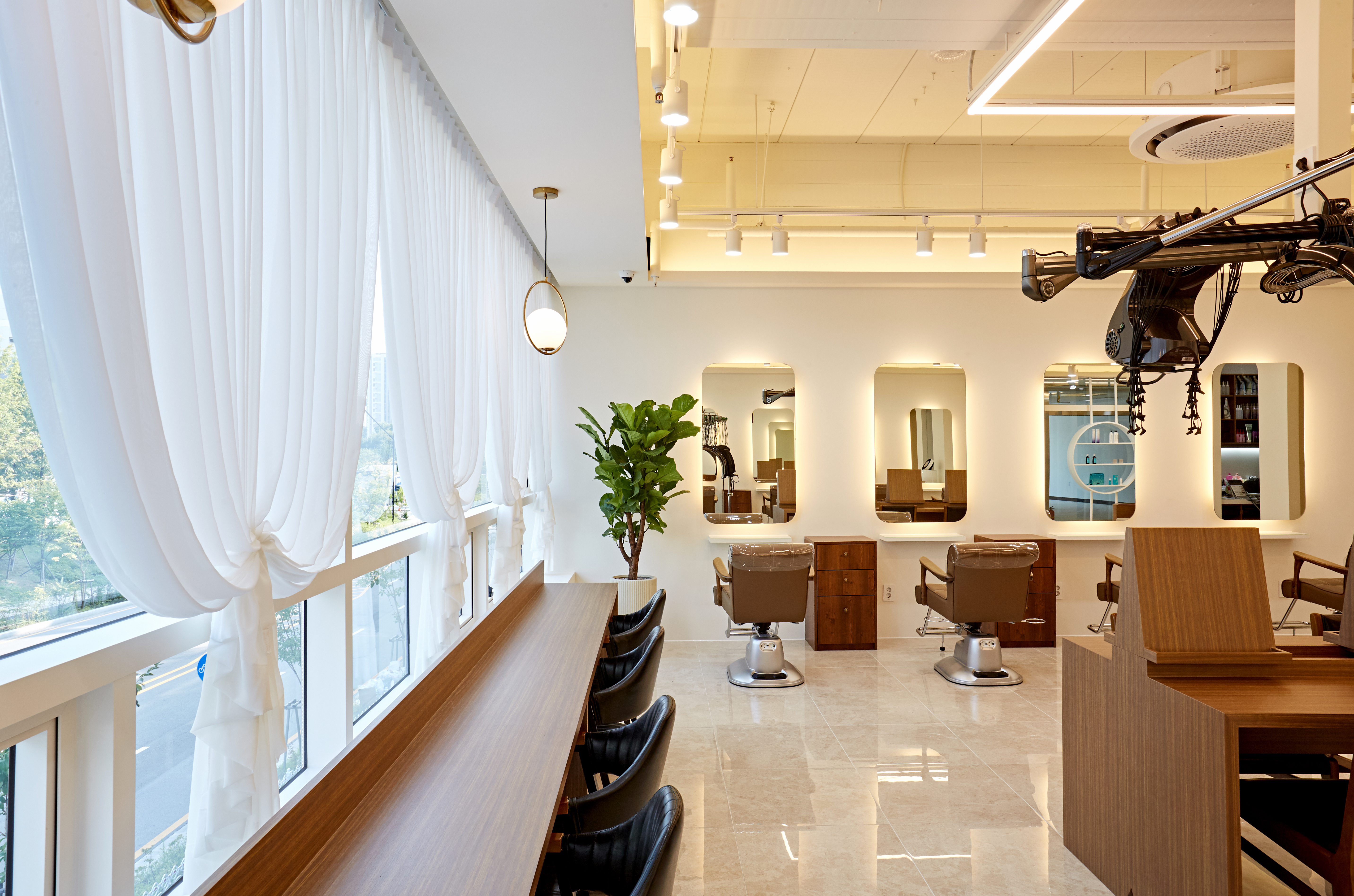 업종이 미용실인만큼 밝고 화사한 분위기를 위해