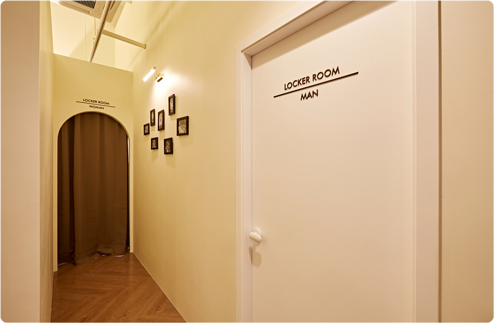 인포테이블이 있는 로비공간을 지나 탈의실로 진입하는 동선에는 인바디 검사를 하고 이를 상담받을 수 있는 카운셀링 룸이 있고 갈아입을 운동복이 비치돼있는 옷장이 있어 편리하게 사용할 수 있습니다.