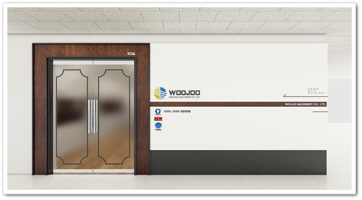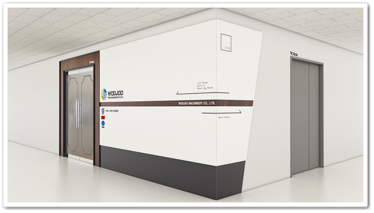 현관부터 소개를 해드리도록 하겠습니다. 흰색의 벽면을 설치하여서 사무실이 깔끔하고 깨끗하다는 분위기로 시작이 되게끔 오피스인테리어 구성을 하였고 밋밋해보일 수 있는 흰색의 벽면에 우드색 포인트들을 섞어 넣어서 깔끔함을 더욱 살렸습니다. 문도 동일한 우드색을 이용하여 인테리어를 하였고 심심한 느낌이 들 수 있는 문의 우측에 기업의 로고를 넣어서 공간을 활용하는 디자인을 설계하였습니다.