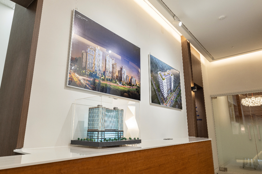 기업홍보관 쇼룸인테리어 회사의 이미지를 반영한 디자인으로 완성 안녕하세요 916디자인입니다. 사무실은 업무를 보는 곳이기도 하지만, 회사의 정체성과 아이덴티티를 보여주는 쇼룸의 기능