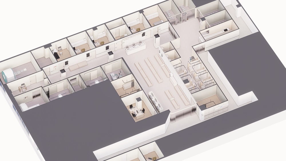 또한 각 치료 구역별 파티션과 커튼 위치를 3D 모델링으로 미리 확안해 환자 프라이버시를 확보하면서도 직원들의 이동과 장비 사용에 불편함이 없도록 조정했답니다.