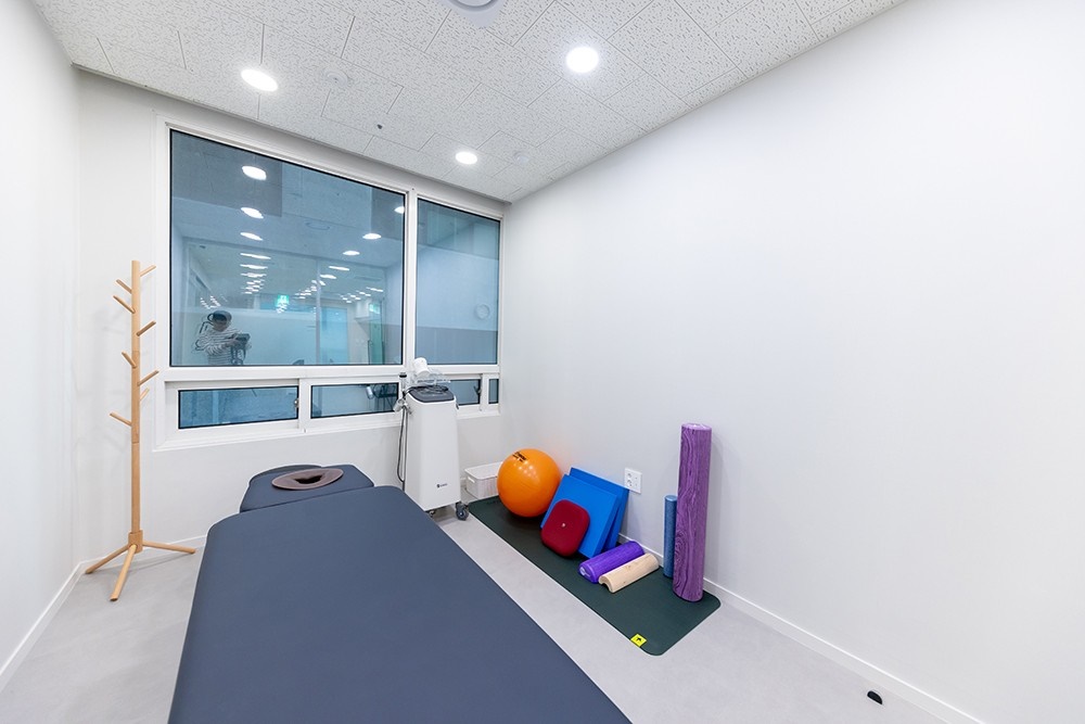 테라피용 매트와 운동기구의 위치까지 세밀하게 배치하여 치료 시 필요한 기능성과 함께 심리적 안정감을 제공할 수 있도록 했죠.