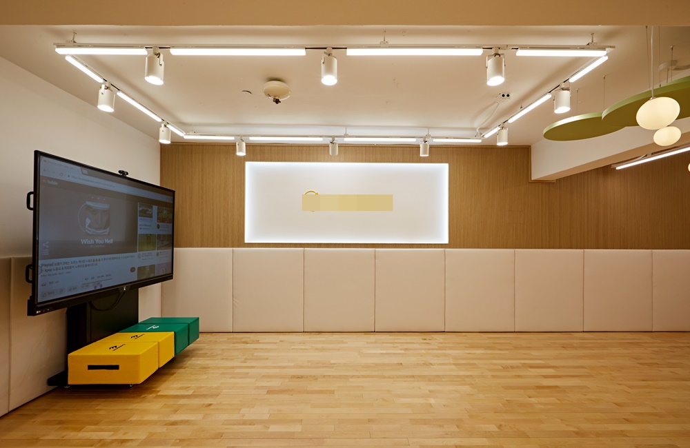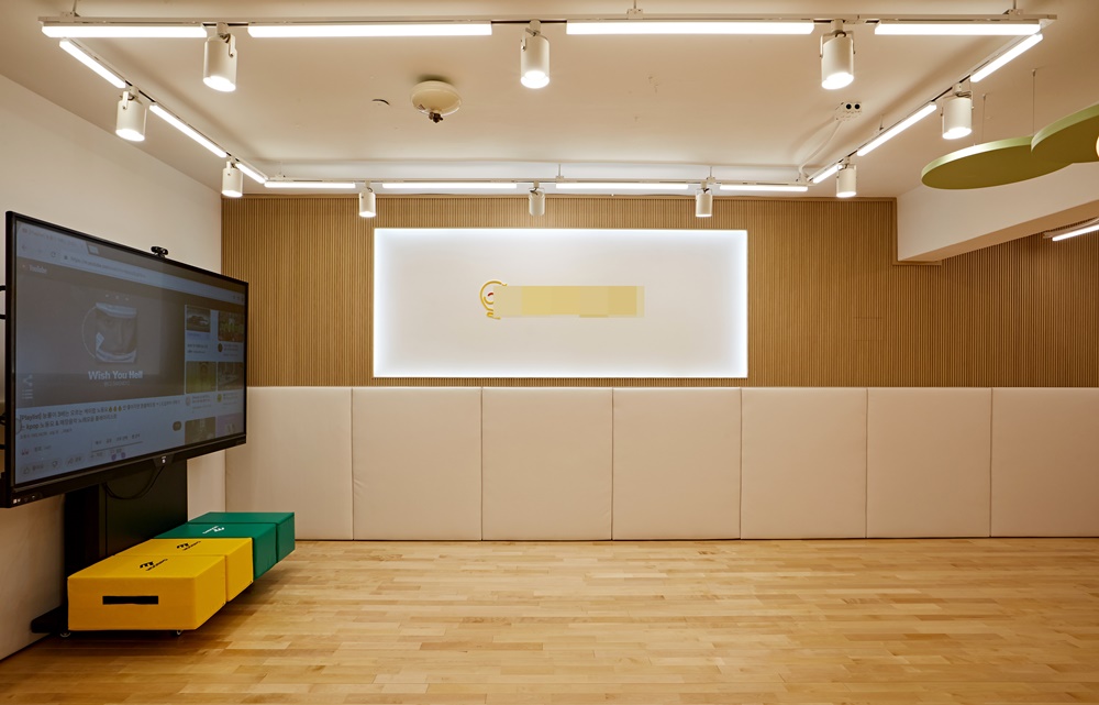 벽면은 무광톤의 친환경 패널, 바닥은 미끄럼 방지 마루를 사용해 디자인과 실용성의 균형을 완성했습니다.