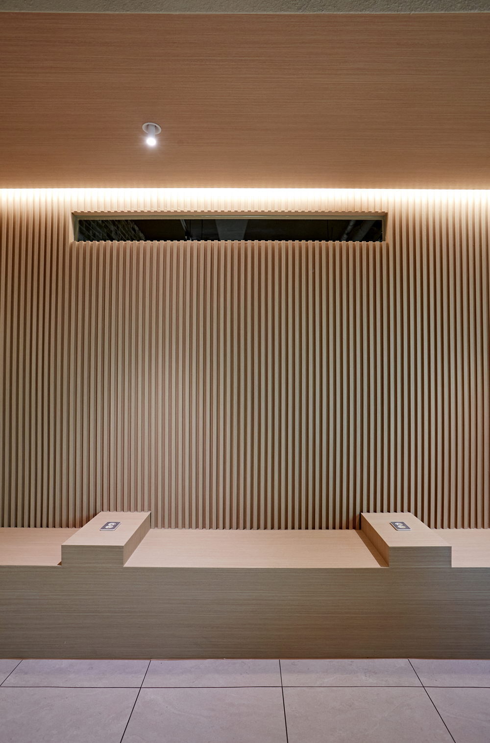 휴게 공간에서는 아늑한 분위기를 연출하기 위해 부드러운 조명을 선택했습니다.