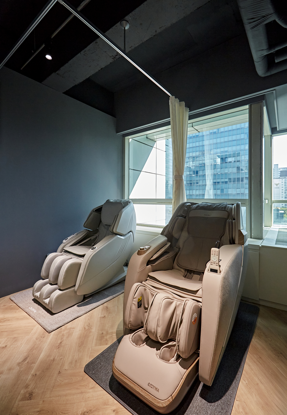 이번 용인인테리어업체 시공 사무실에서는 안마의자 등을 배치하여