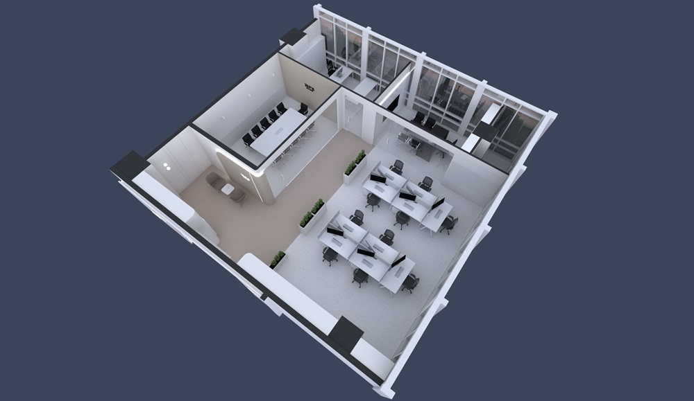 이번 용인 사무실인테리어 시공의 3d 디자인 단계에서는 공간의 전체적인 톤과 소재 선정, 동선까지 세밀하게 계획했어요.