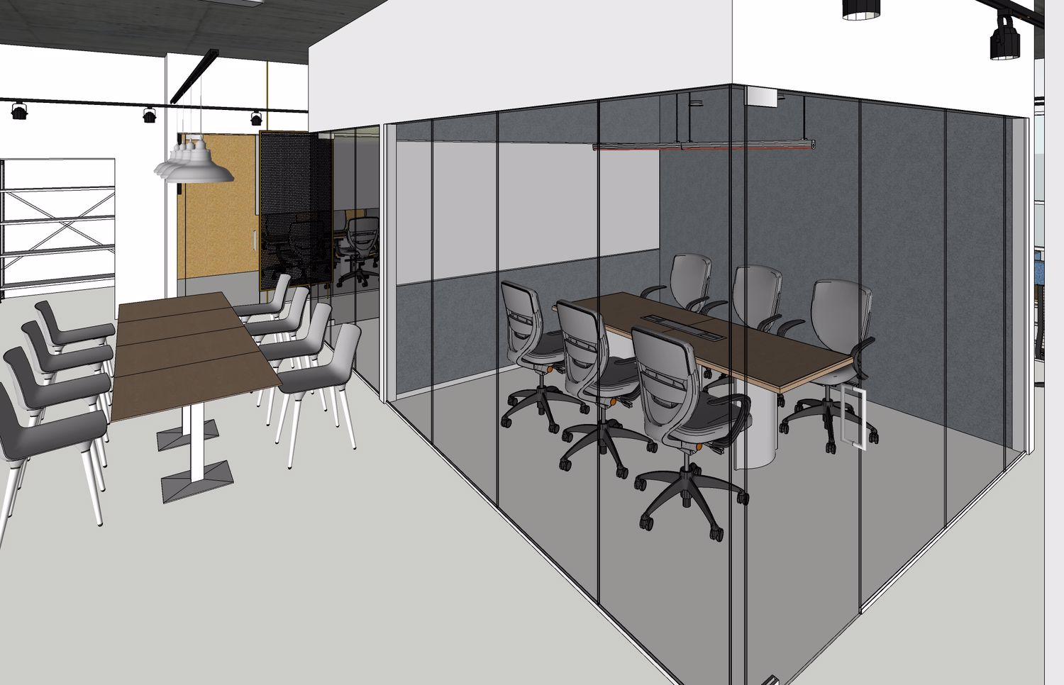 우선 배치도입니다. 입구로 들어섰을때 중앙에 미팅룸을 기준으로 사무공간이 둘러싸고 있는 것을 확인할 수 있습니다.