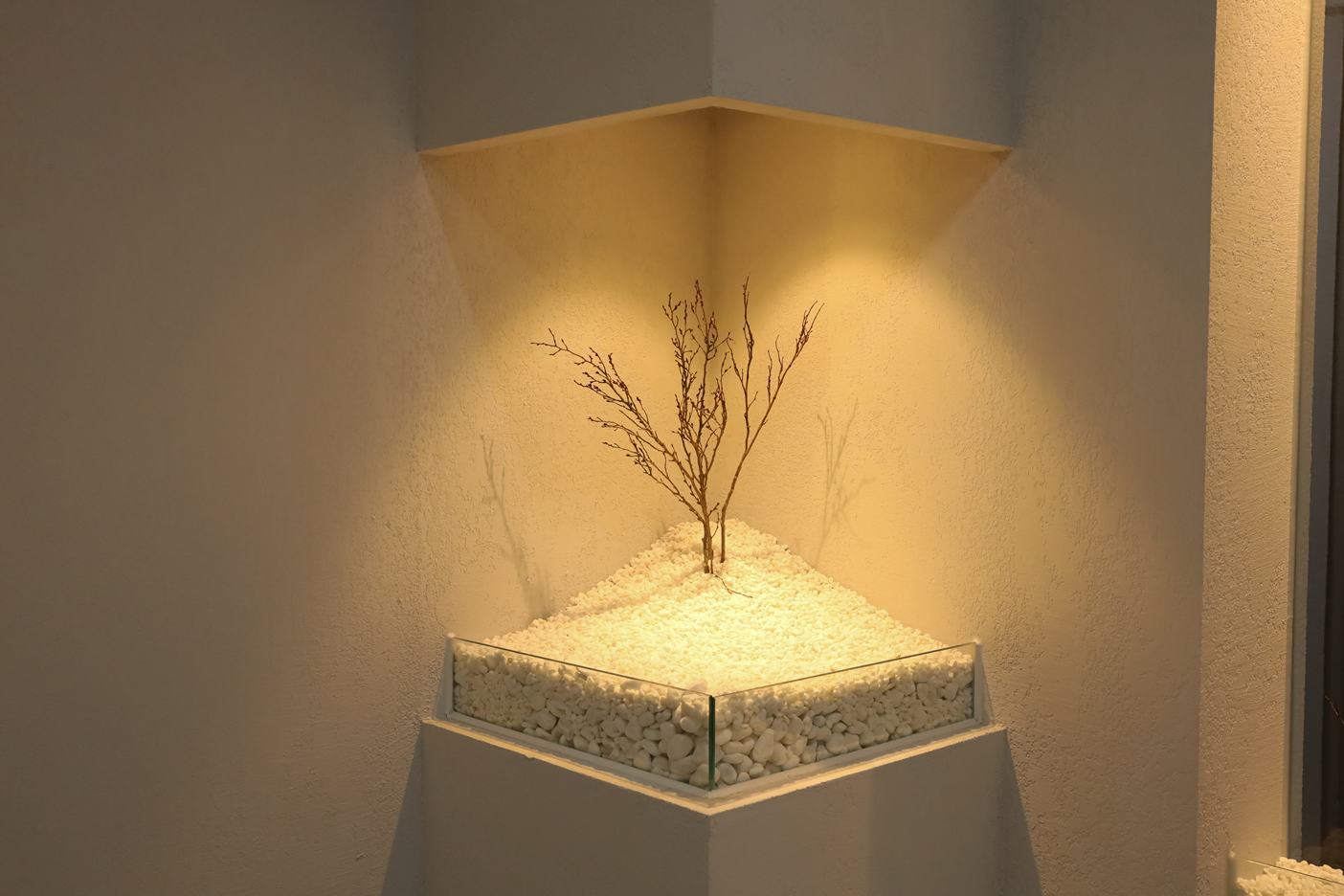 화이트 베이스의 깔끔함, 공간 곳곳에서 살아 숨쉬는 조명의 효과, 자연 요소를 더한 플랜테리어 구성,